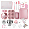 隔热手套*1 打蛋盆*1 8寸活底*1 硅胶垫*1 脱模刀*1 木质擀面杖*1 5米硅油纸*1 学厨食谱书*1 电子秤*1 量杯*1 11寸烤盘*1 6连杯玛芬模*1 手动打蛋器*1 硅胶油扫*1 硅胶刮刀*1 饼干模*6 量勺5件套*1 电动打蛋器*1 吐司模*1 裱花袋*1 蛋清分离器*1 玛芬纸杯*25 面粉筛*1 裱花嘴*6