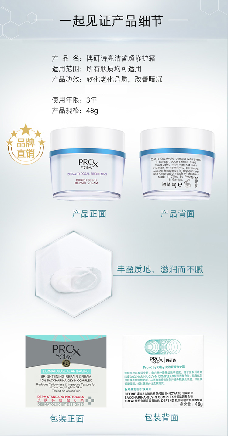 玉兰油 Pro-x by OLAY亮洁晳颜修护霜48g 适用范围:所有肤质均可适用