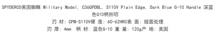 SPYDERCO蜘蛛C36GPDBL户外露营装备便携拆快递野营工具折叠刀 C36GPCMOBK深灰色 60°以下 118mm 8.4cm