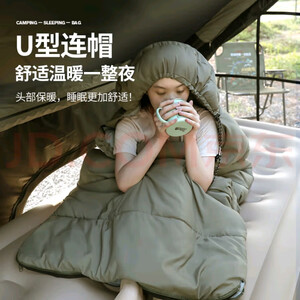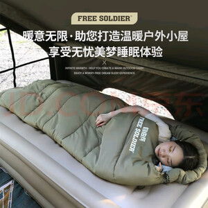 自由兵睡袋户外秋冬成人露营单双人便携睡袋学生午休家用信封冬季睡袋 旅行过夜绿色1.8kg仿羽棉8-12℃