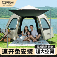 荒野拾光帐篷户外折叠便携式露营野餐过夜秋冬装备全套自动速开黑胶防晒 黑胶【两门四窗】3-4人+防潮垫