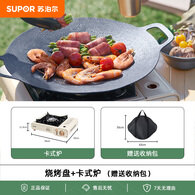 苏泊尔煎烤盘户外不粘烤肉盘铁板圆形煎肉锅子家用卡式炉露营烧烤盘-34 烧烤盘+卡式炉