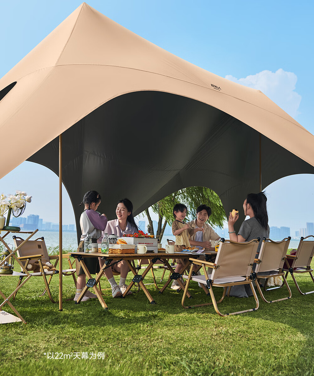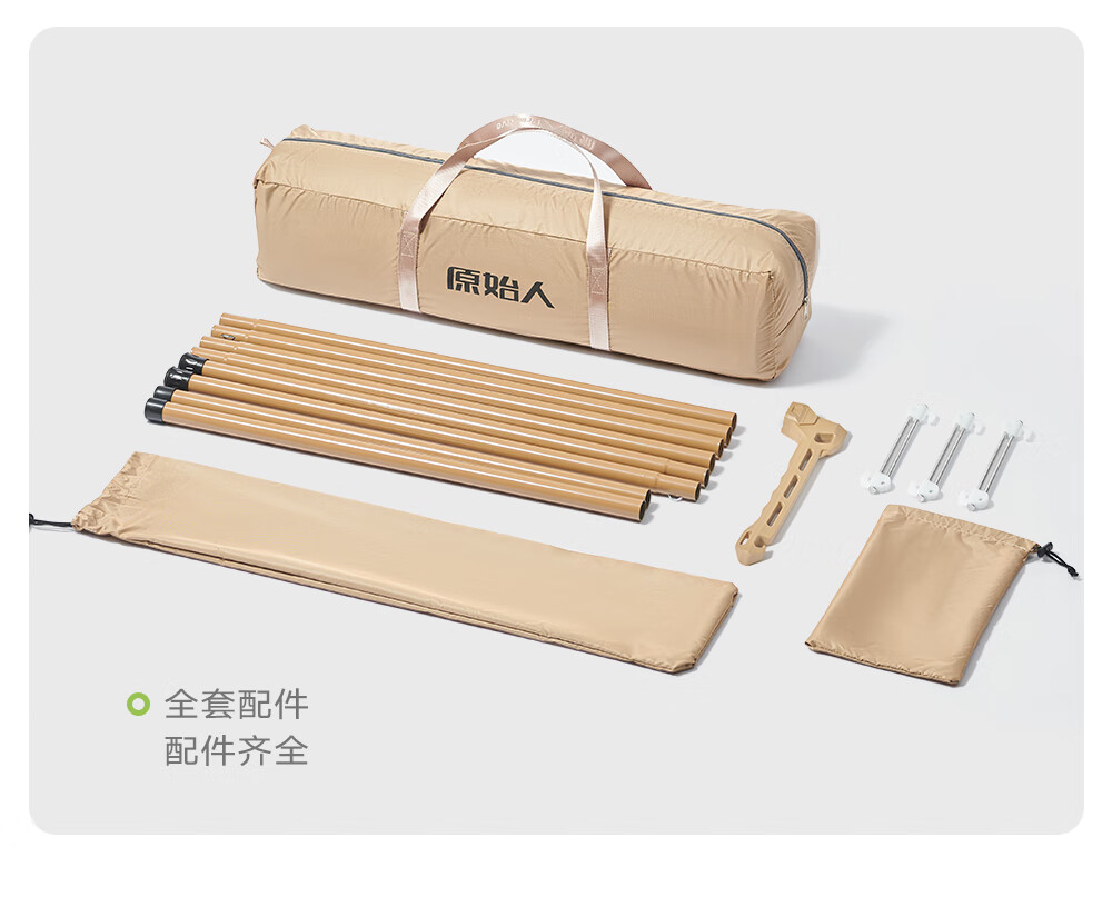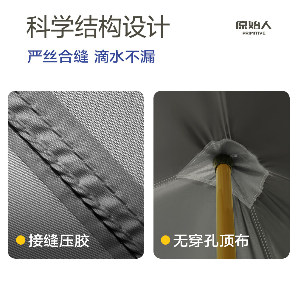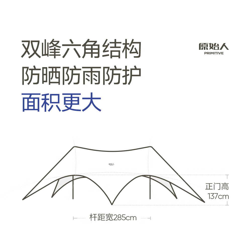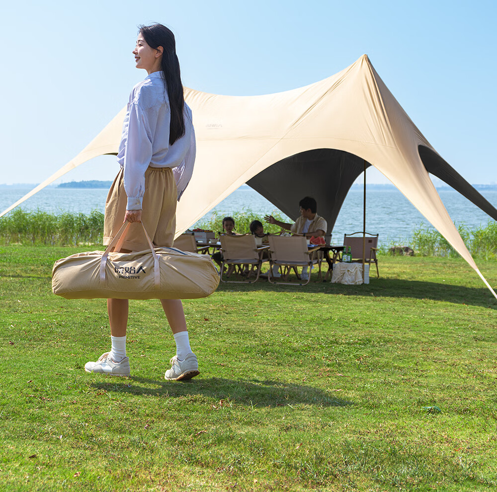 原始人(The Primitive)天幕帐篷户外露营便携防雨防晒新型速开野营遮光黑胶遮阳棚装备 28㎡奶油咖【速搭双峰+2.8M粗杆】