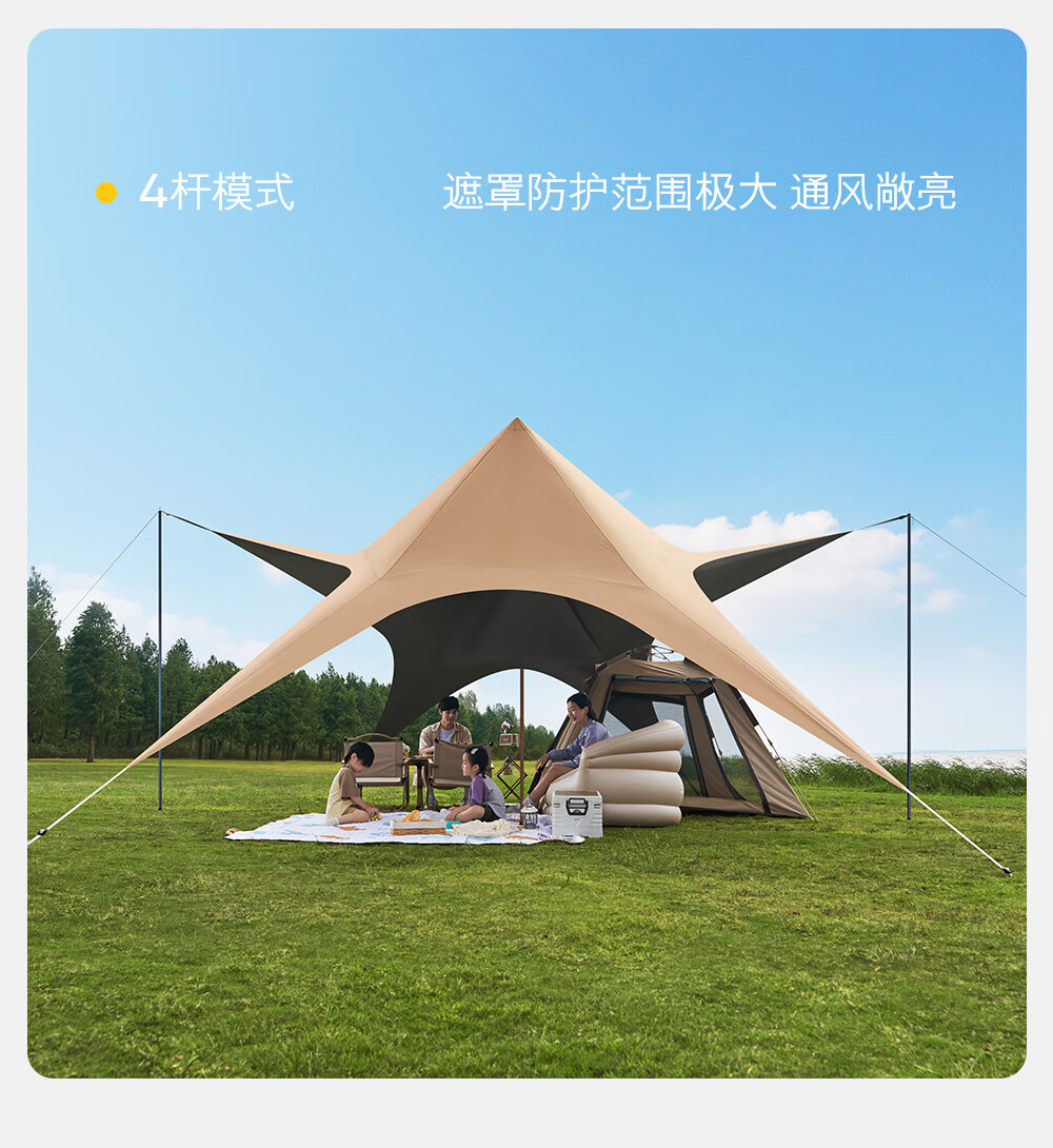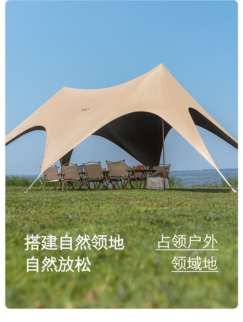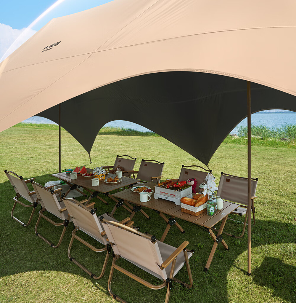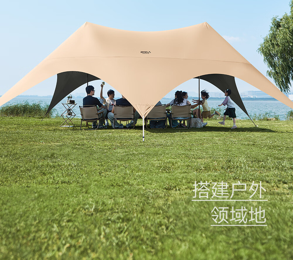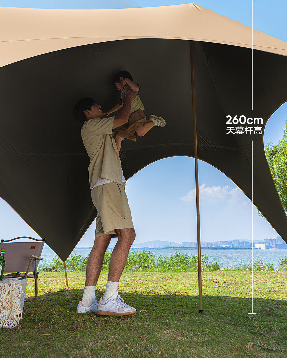 原始人(The Primitive)天幕帐篷户外露营便携防雨防晒新型速开野营遮光黑胶遮阳棚装备 28㎡奶油咖【速搭双峰+2.8M粗杆】