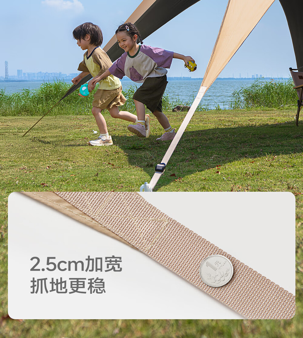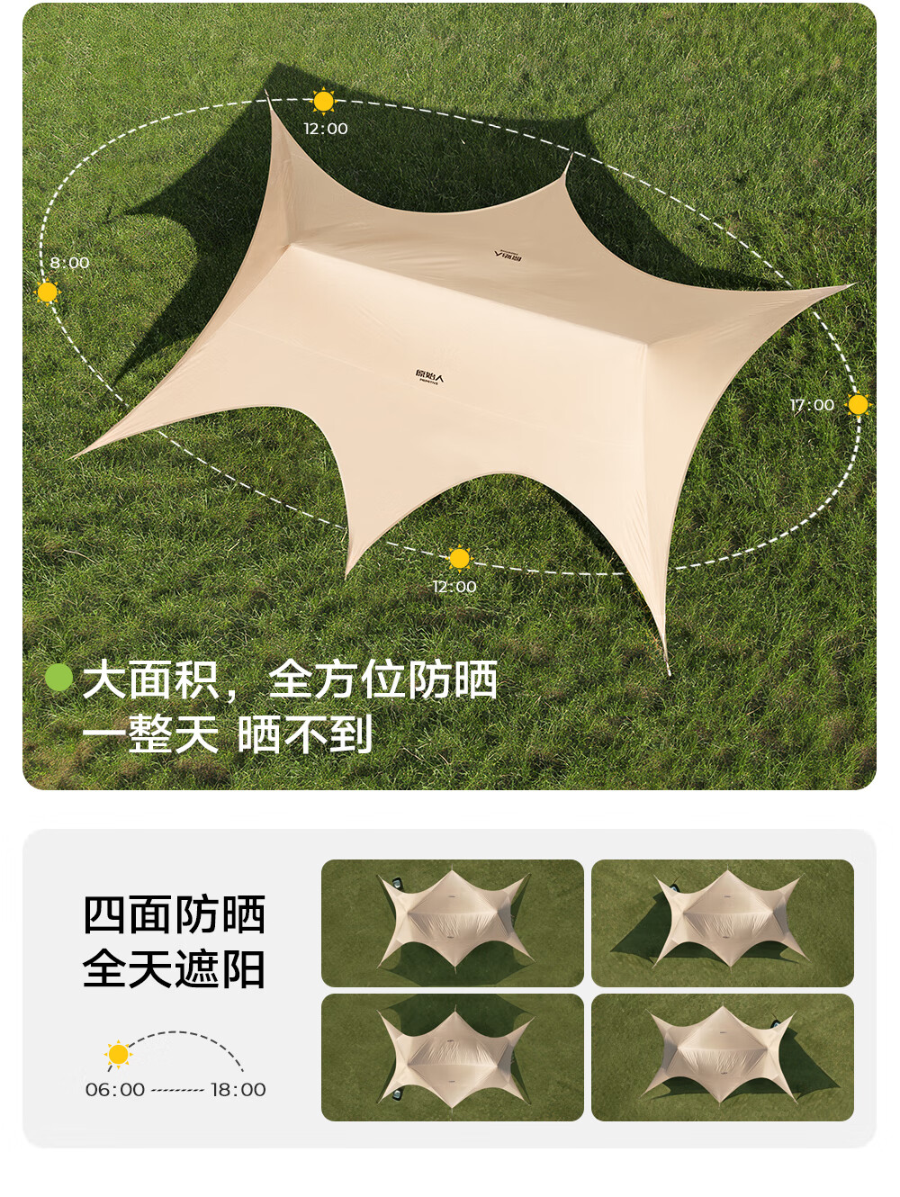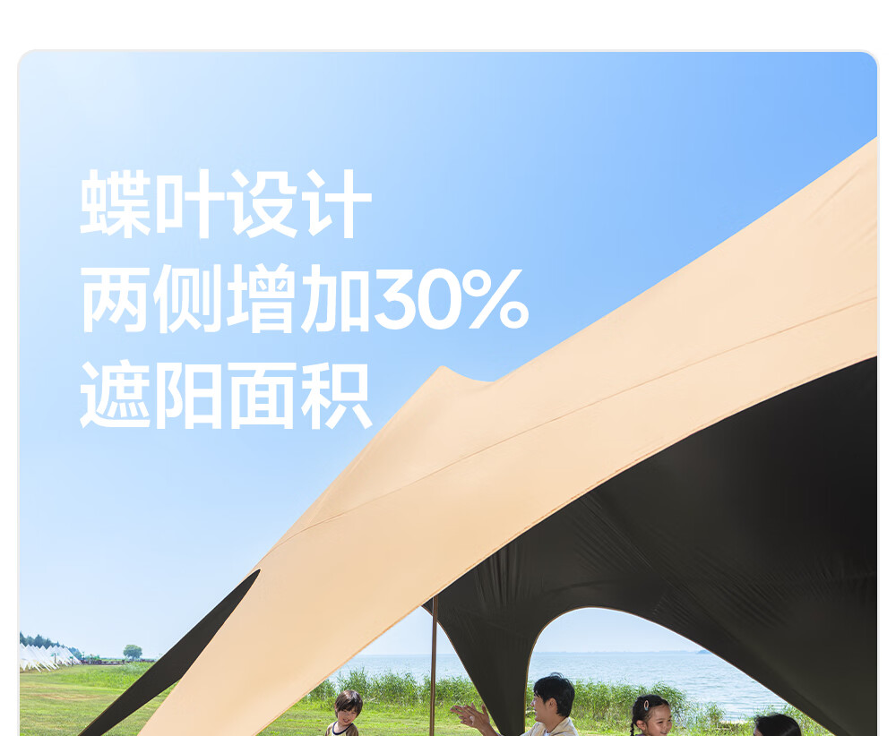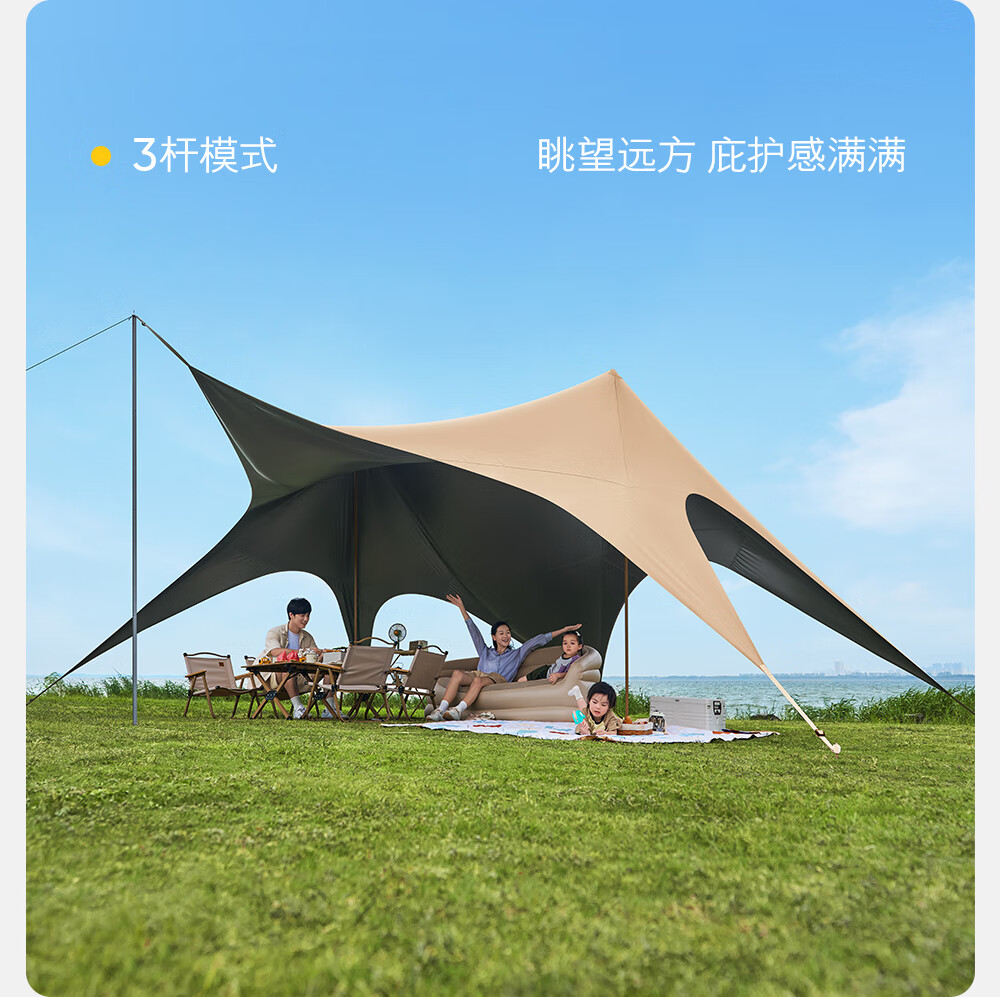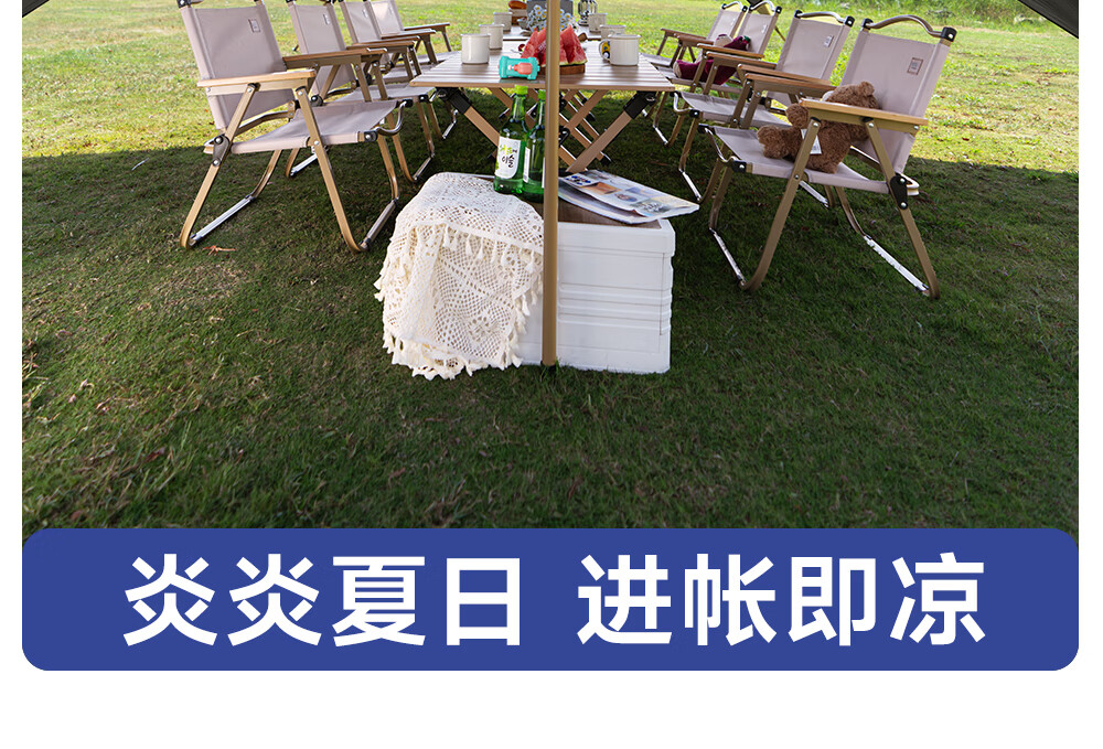 原始人(The Primitive)天幕帐篷户外露营便携防雨防晒新型速开野营遮光黑胶遮阳棚装备 28㎡奶油咖【速搭双峰+2.8M粗杆】
