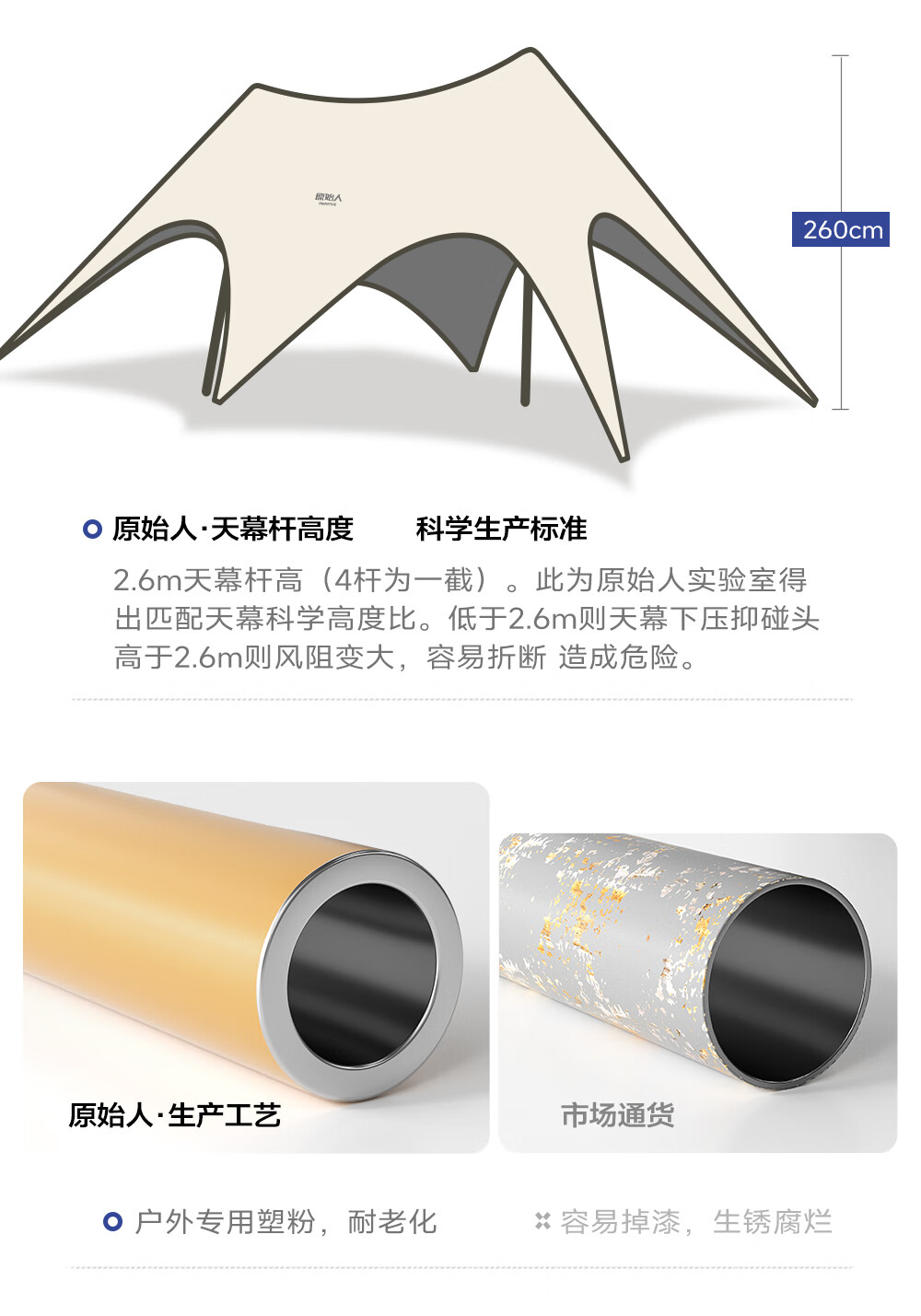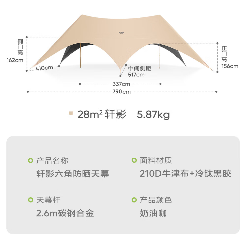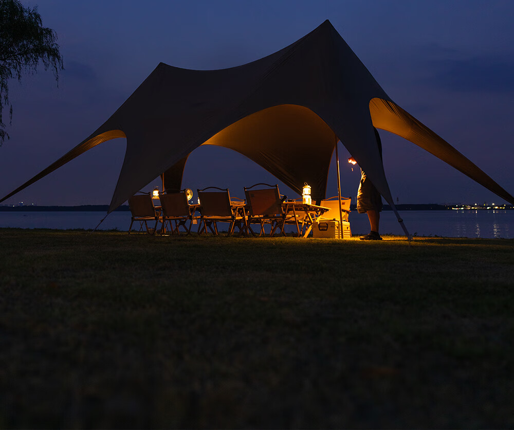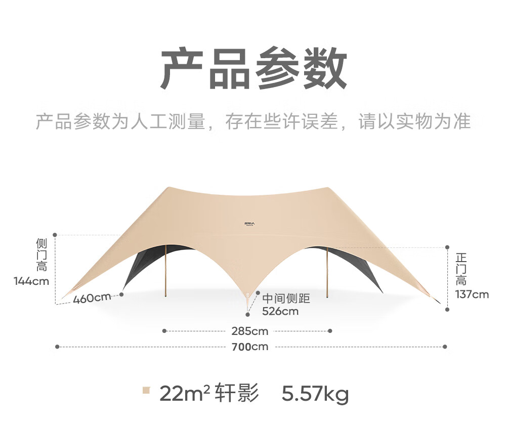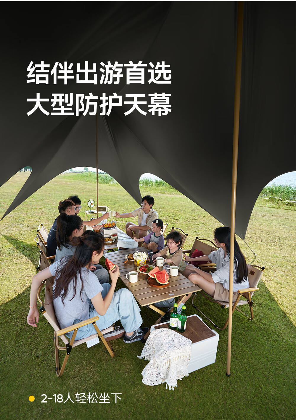 原始人(The Primitive)天幕帐篷户外露营便携防雨防晒新型速开野营遮光黑胶遮阳棚装备 28㎡奶油咖【速搭双峰+2.8M粗杆】