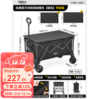 原始人露营推车户外营地拖车旅行可折叠手推野餐野营手拉车遛娃小拉车 200L 曜石黑经典越野款+桌板