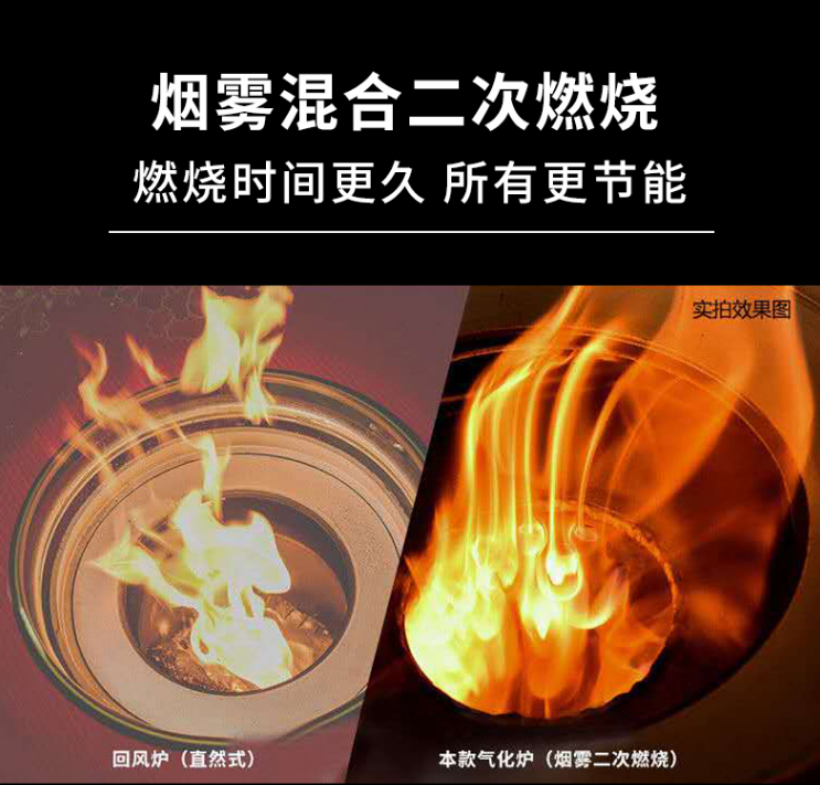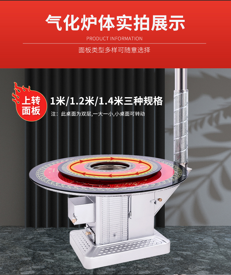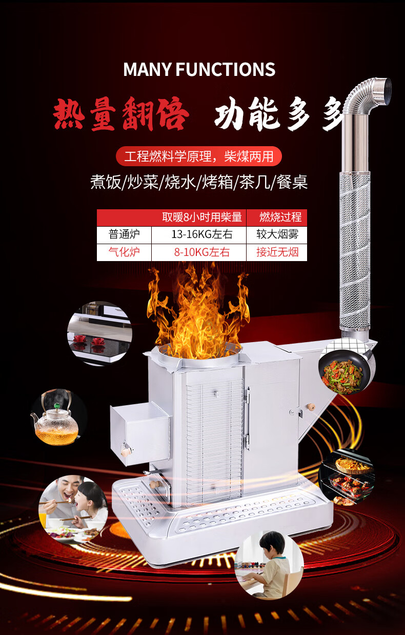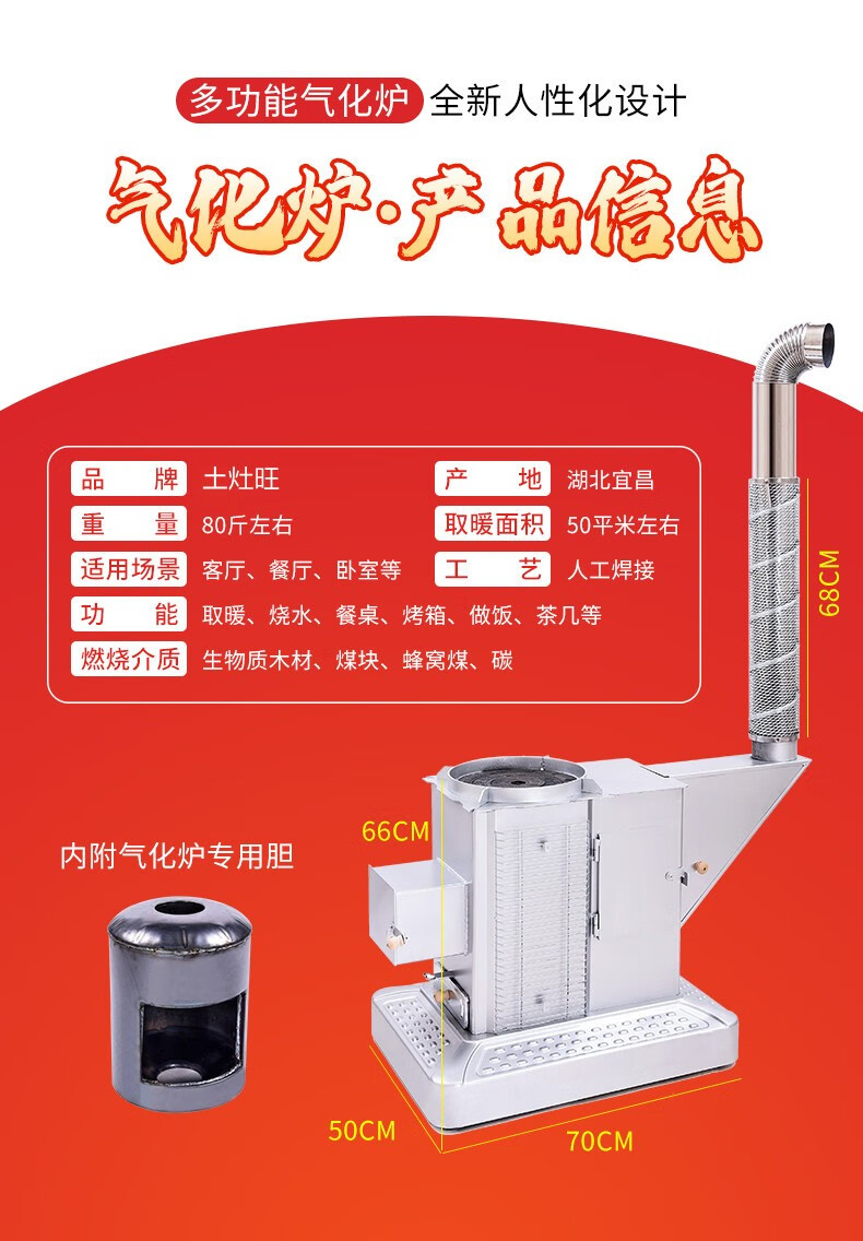 土灶旺气化炉农村高端烤火炉家用取暖炉烧煤烧柴室内无烟柴火炉柴煤两用 0.8米 不锈钢桌面+气化炉 柴煤两用