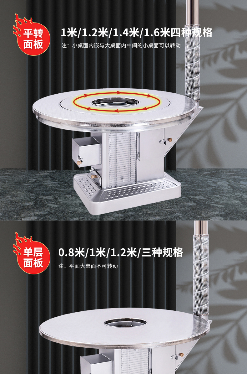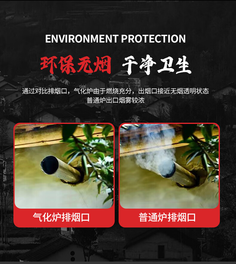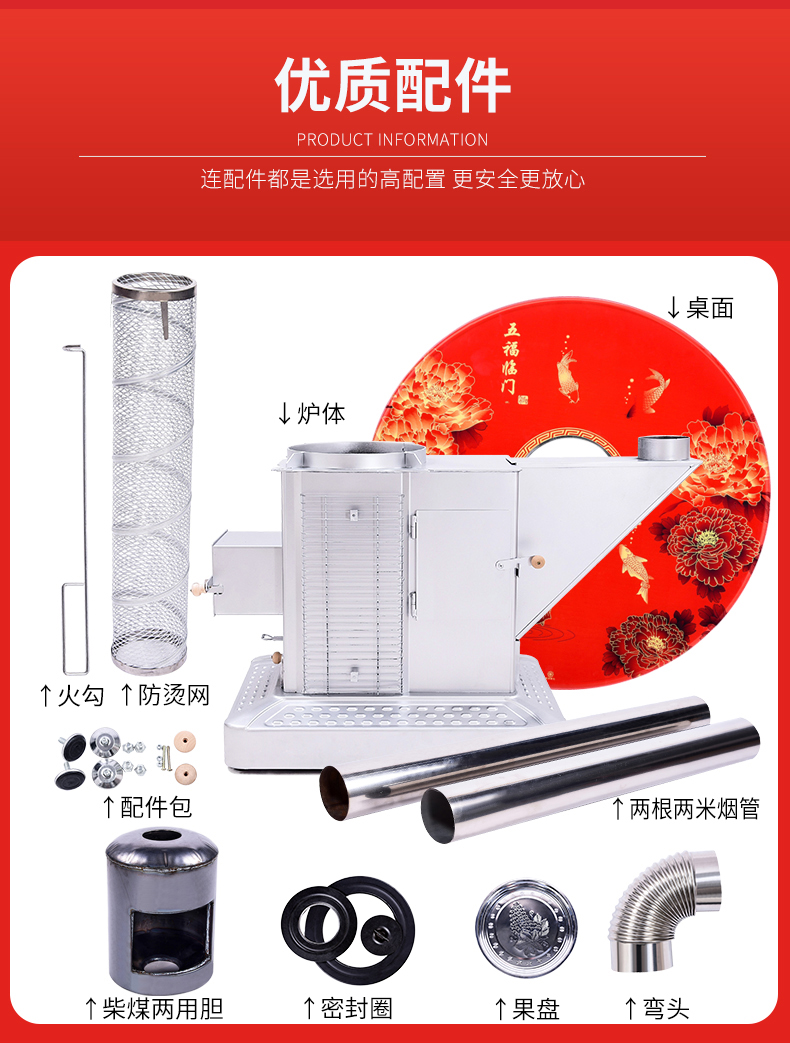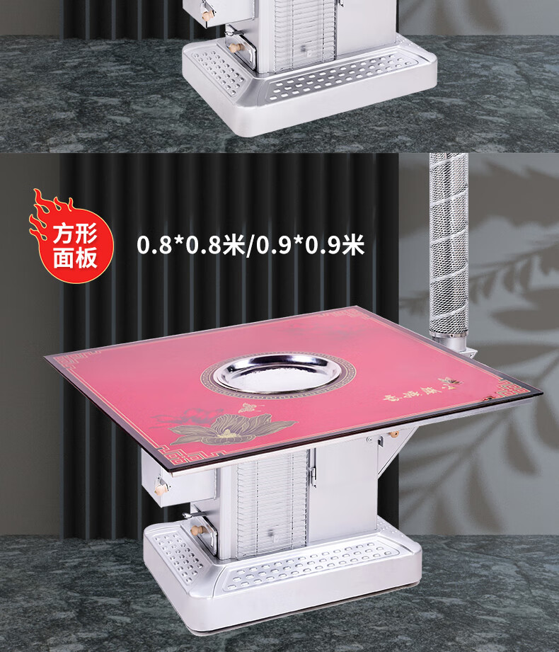 土灶旺气化炉农村高端烤火炉家用取暖炉烧煤烧柴室内无烟柴火炉柴煤两用 0.8米 不锈钢桌面+气化炉 柴煤两用