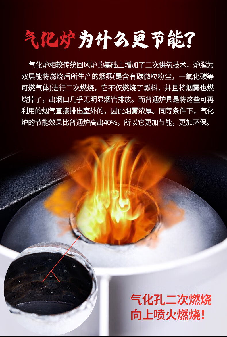 猎钢狼加厚气化炉家用柴煤两用农村柴火炉冬季取暖炉无烟烤火炉烧炭 1米不锈钢柴煤两用特厚气化炉