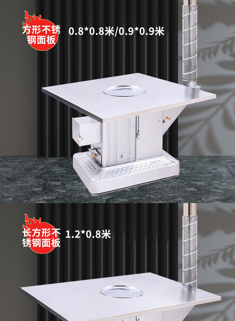 好厨官(包送到家)高端特厚气化炉柴煤两用取暖桌农村烤火炉无烟柴火炉 0.8米不锈钢单层【专烧柴】 带不锈钢水箱