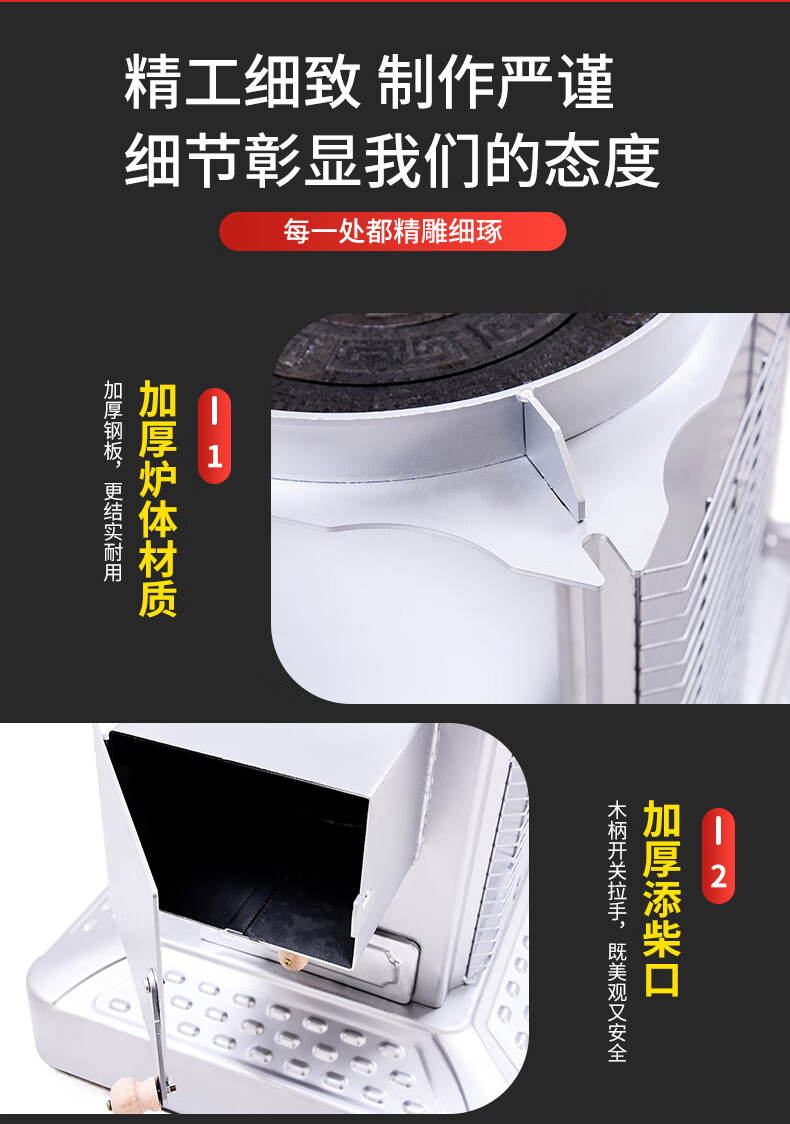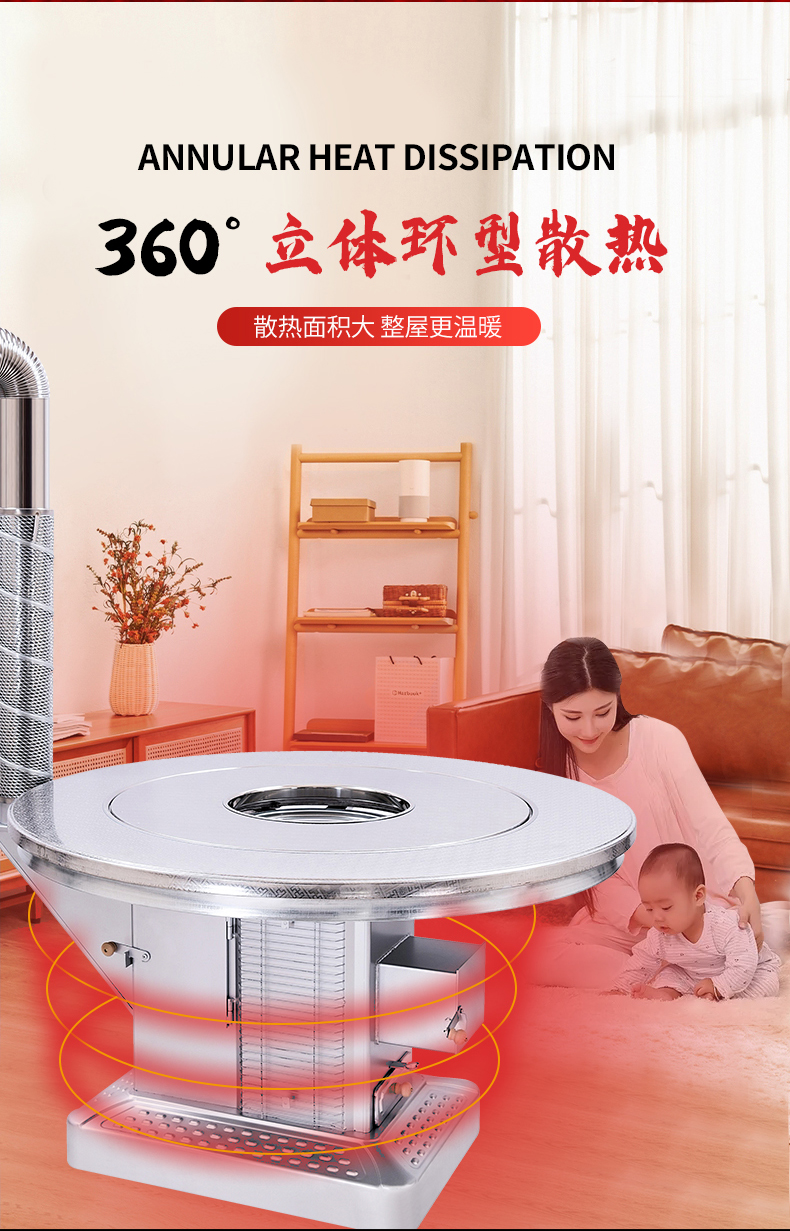 潮思汇柴火炉灶新款取暖炉农村回风炉家用室内烧木柴煤炭烤火桌子 柴炉【升级焊接】 桌面【0.8米不锈钢】 厚款