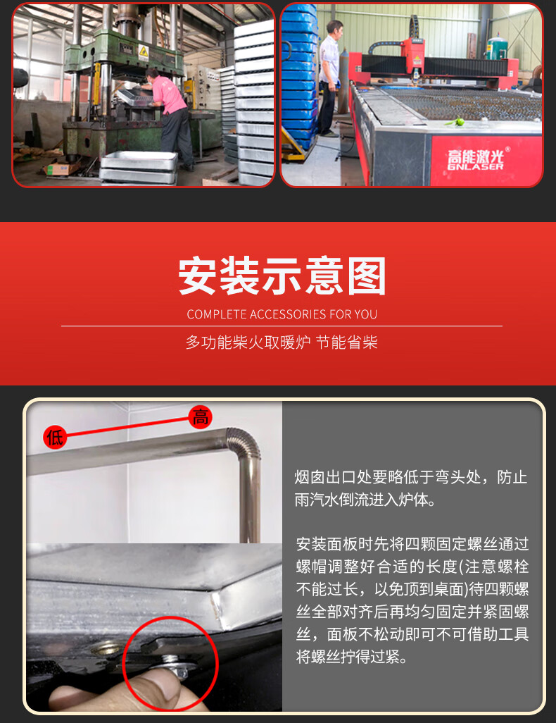 还没安装完成就烧了试试下火好猛;烧了好几天了才来评论;取暖 做饭挺好;比我们以前的好了好多倍;家里老人说好烧;服务也很好;有点问题服务会帮;快递也快;效果不错