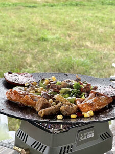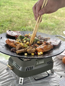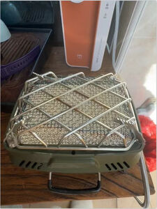 哈哈,取暖用的被我拿来当炉子了,还真别说,火力还不小,但也没有普通的卡式炉大,适合拿来慢烤,就是要注意底下不要垫容易烧着的东西,炉子周边温度还是蛮高的