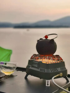 拿到当天就测了下,周边温度的提升是否满足需求的,拿来煮茶沸腾的时间差不多3~4分钟,中火用了一个多小时吧,气消耗还行配的收纳包和点火器,还有一个转接头,也能用卡式气獾,这点不错