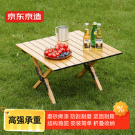 京东京造 户外折叠桌 碳钢蛋卷桌野餐露营装备便携桌子中号60cm木纹色