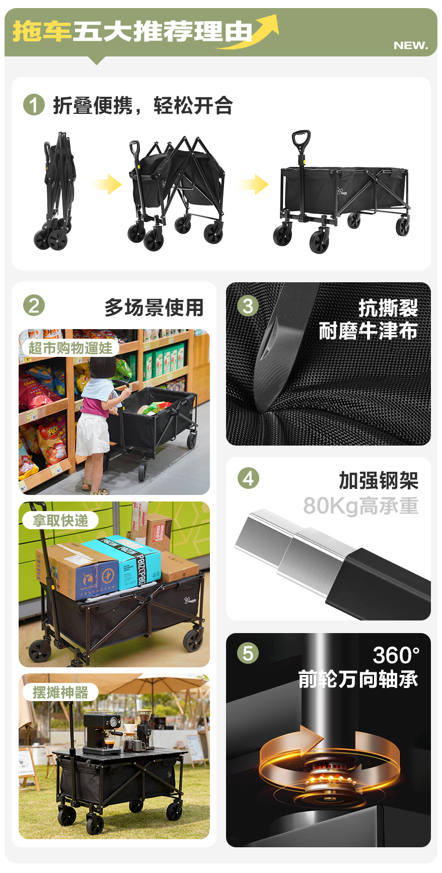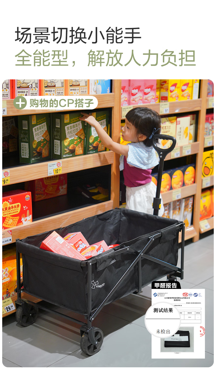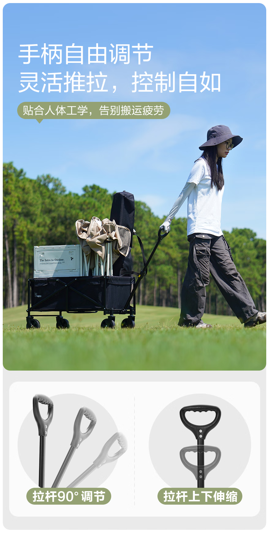 为了露营特意买的,东西太多了,不好拿。小车很好推很顺滑,转方向灵活。质量很好,承重能力强,能装很多东西,不错的小帮手。