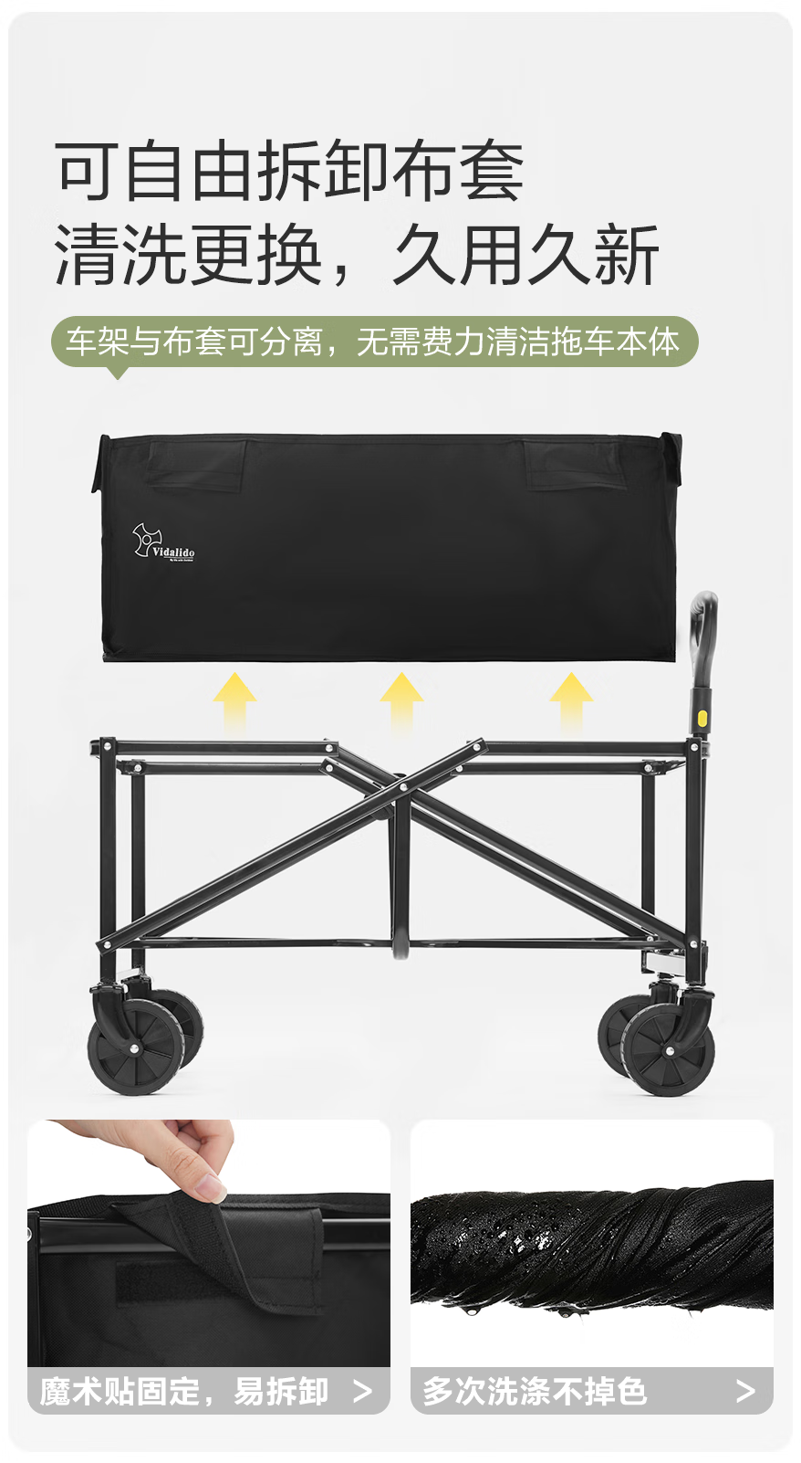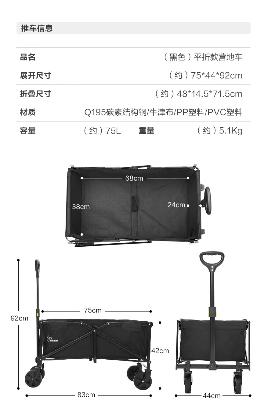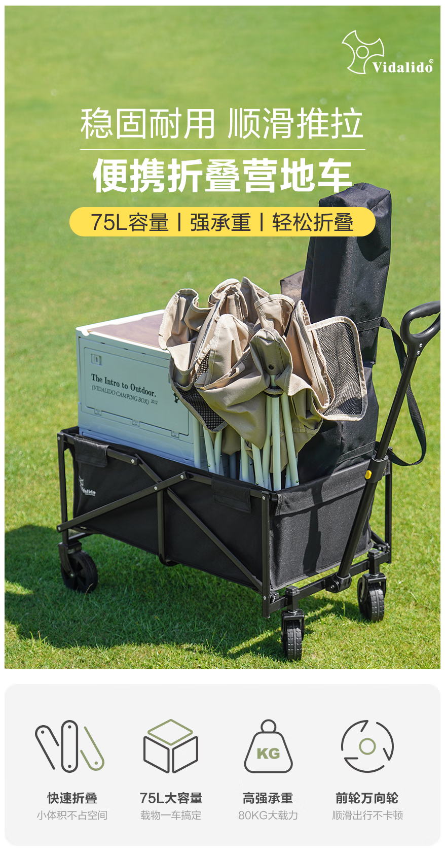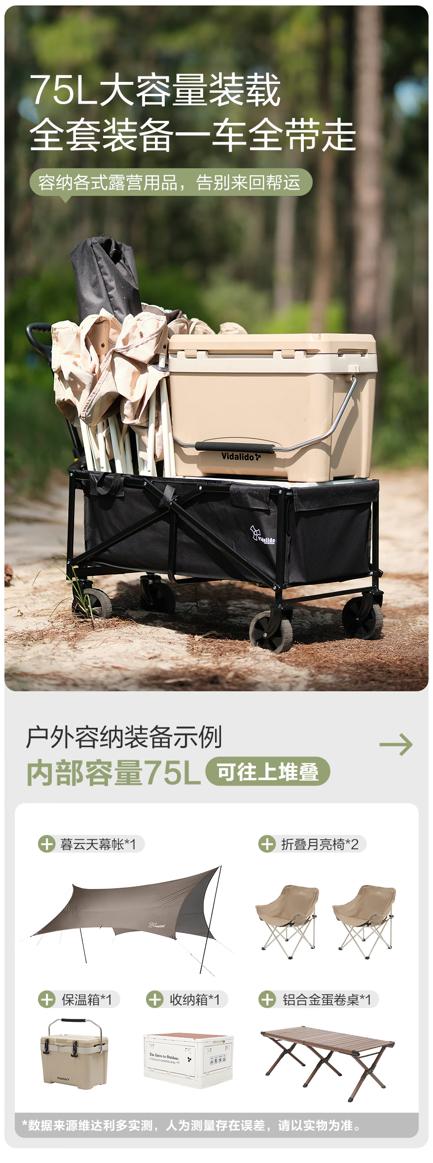vidalido维达利多户外露营车小推车折叠车手拉便携推车大容量拖车营地车 黑色-75L-多用途