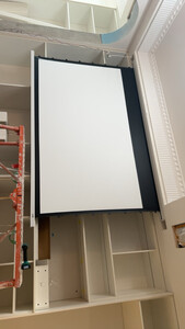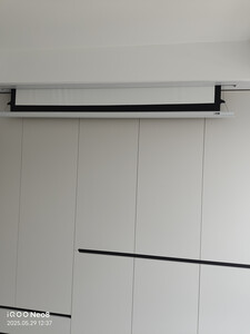 师傅上门安装,考虑周到,安装完美!幕布质量很好,用料扎实。安装后效果也很完美,收上去后贴合预留的开槽位置,隐藏的很棒!这是白天的效果已经很好了,晚上会更出彩!很好的购物体验,点赞!
