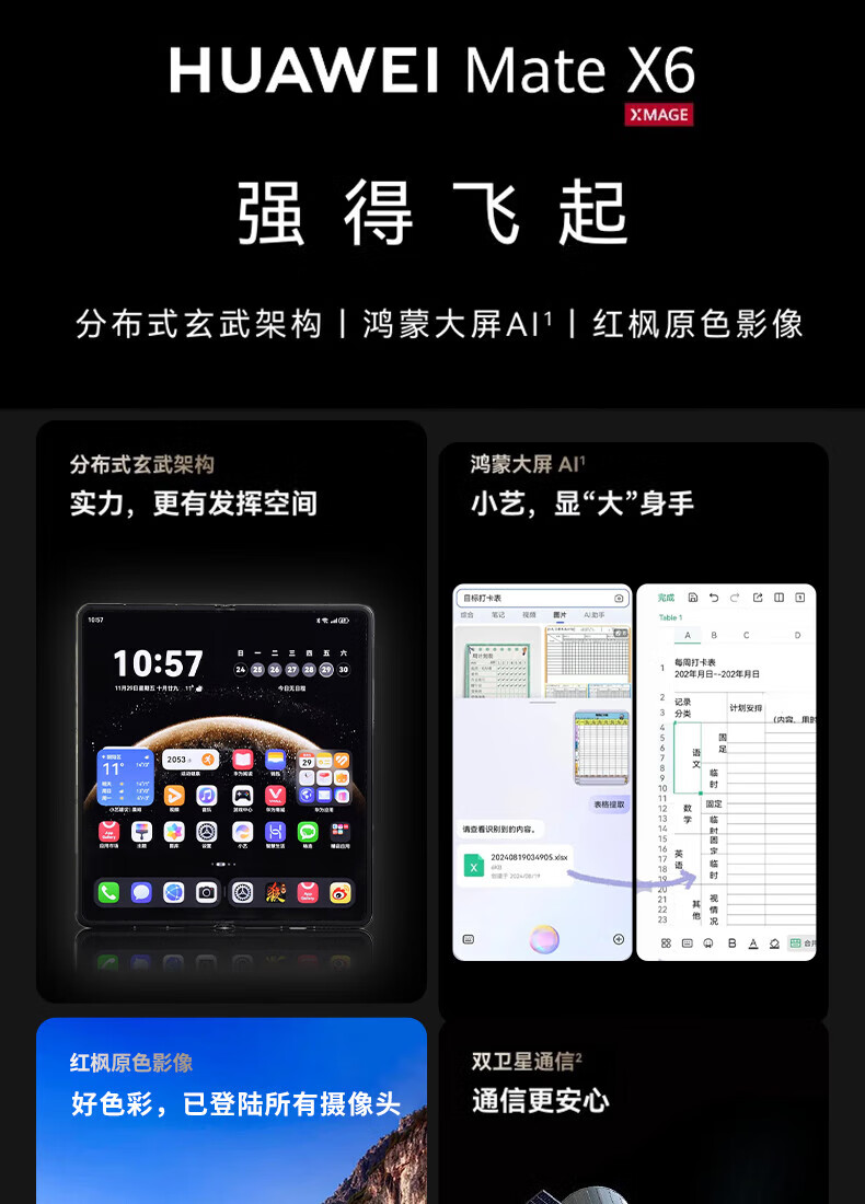 华为mate X6新品折叠屏手机matex6玄武架构红枫原色旗舰商务 寰宇红 12GB+512GB 全国联保 电子保卡已启用