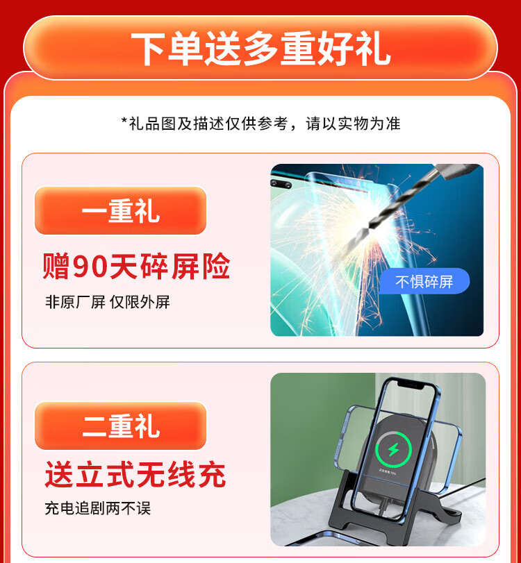 手机(内置电池) x 1 华为充电器 X 1 数据线 X 1 旋转支架保护壳x1 快速指南 x 1 取卡针x1 外屏保护膜(出厂贴在手机上) X 1 三包凭证 x 1