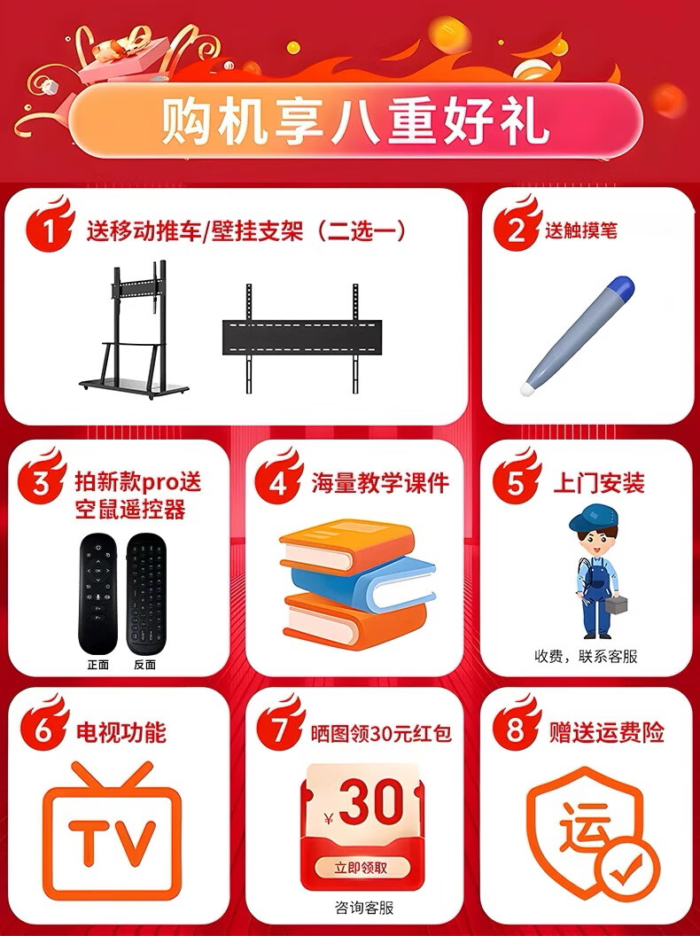 教学一体机多媒体触控屏4k会议平板电视电子白板无线投屏办公培训 75英寸送推车+安装 四代教学【单电脑】i7/16+512G