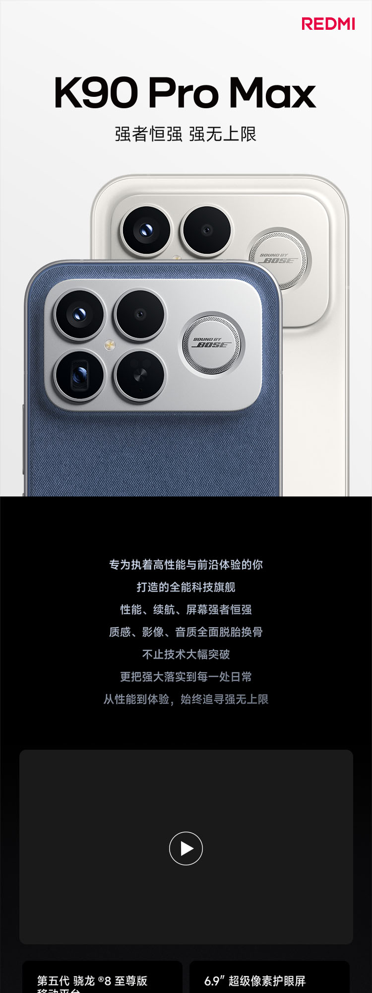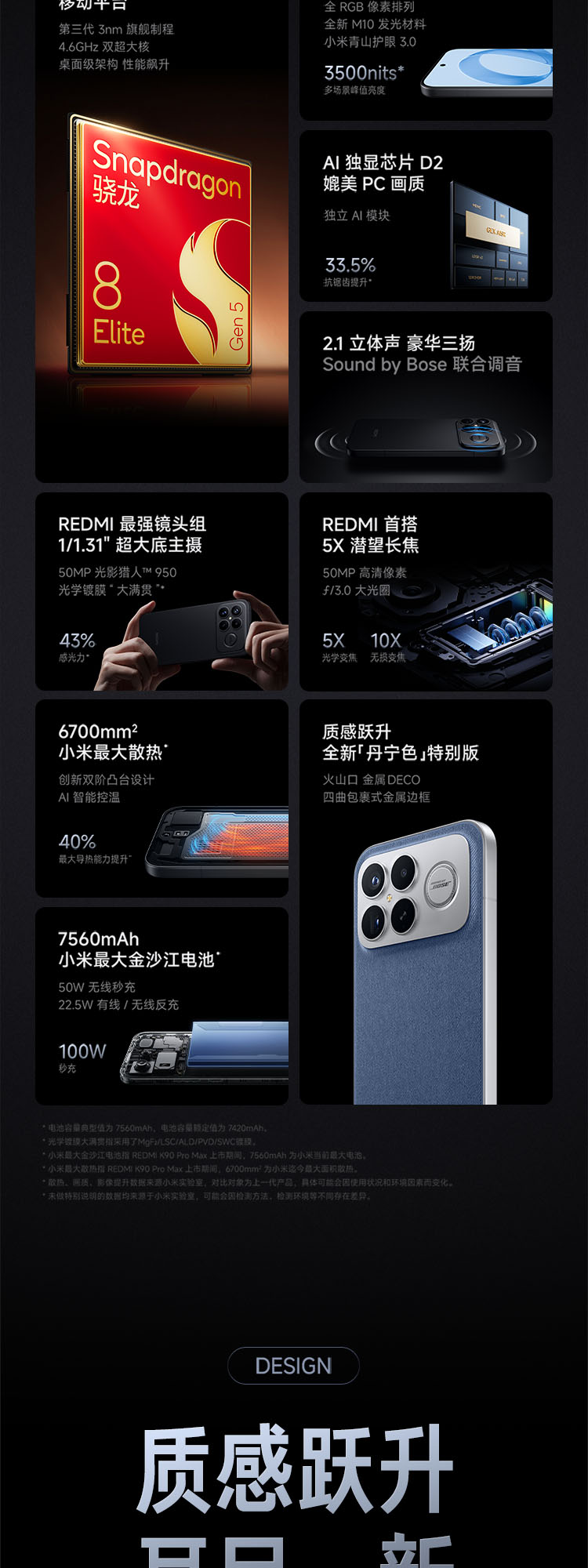 小米(MI)红米 K90 Pro Max 第五代骁龙8至尊版 7560mAh大电池 BOSE联合调音 流金白 16GB+1TB 24期免息套餐