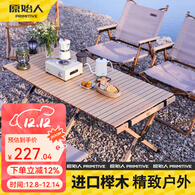 原始人 户外桌子便携式折叠蛋卷桌野餐露营装备野营实木自驾游车载桌 120CM原木色蛋卷桌