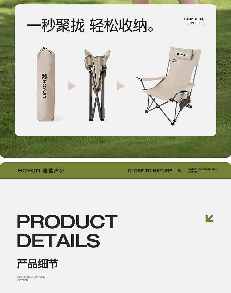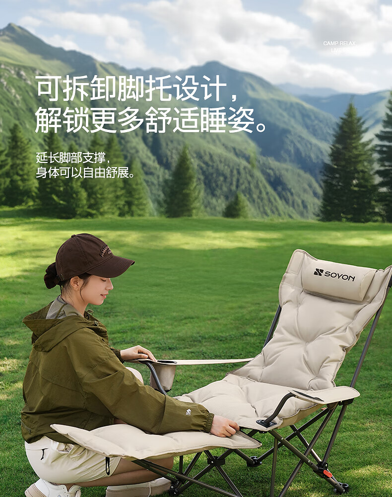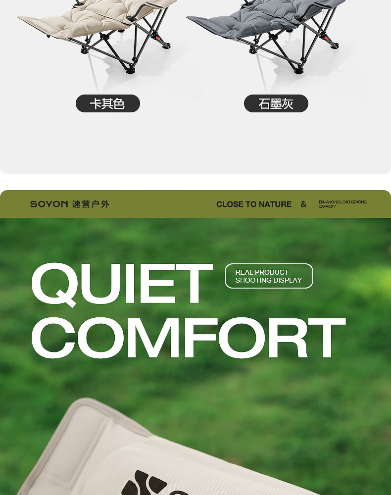 速营SOYON速营户外折叠椅办公室躺椅折叠午休2025新款坐睡两用午睡椅 【3层夹棉款】铅灰色大号【加宽加大】