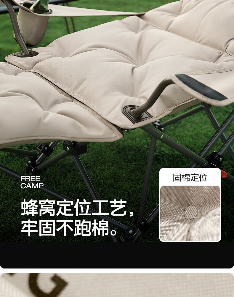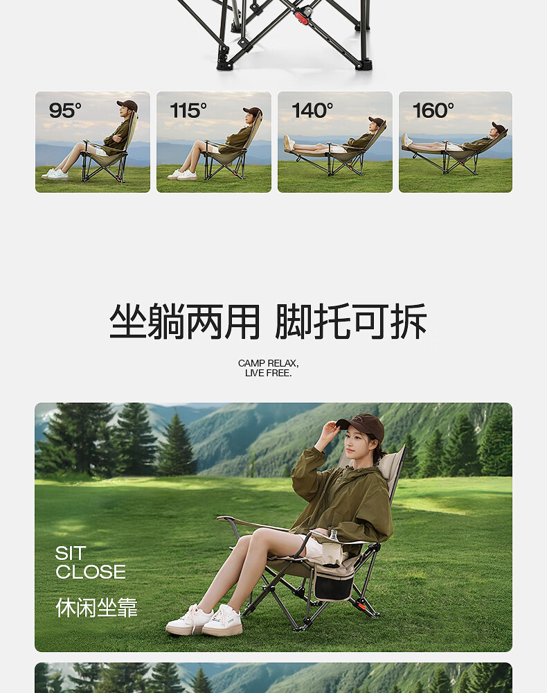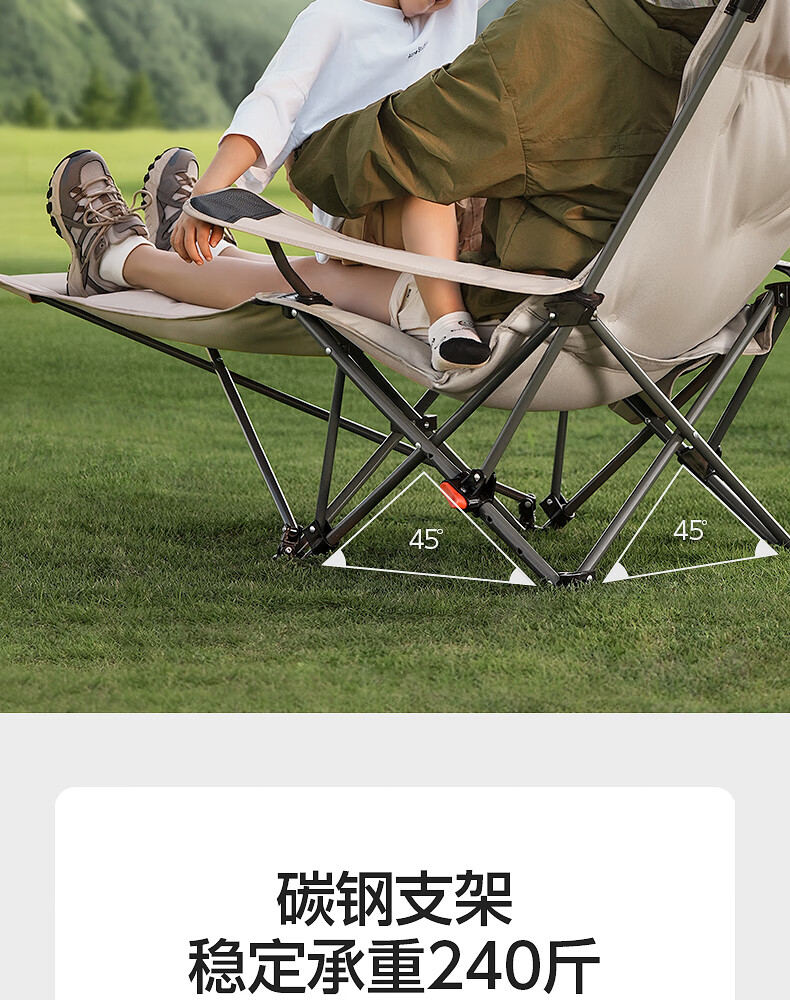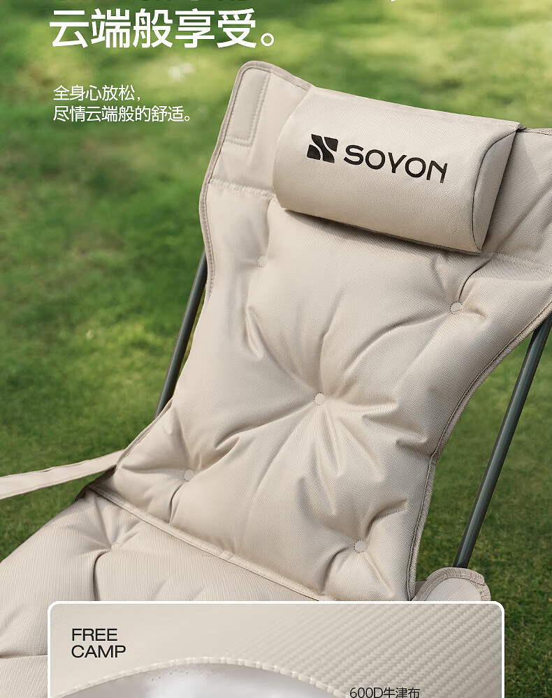 法·玛莎 FAV MARTHA德国品质户外月亮椅带脚托加棉露营椅折叠椅子折叠躺椅午休钓鱼椅 加高靠背-坐躺两用【三档调节加腿托】浅卡其-不加棉