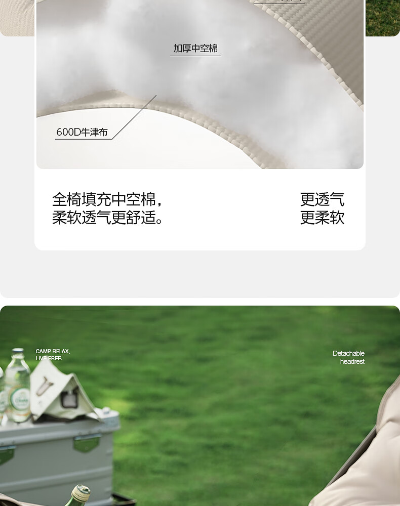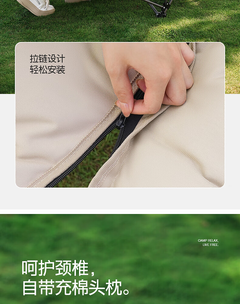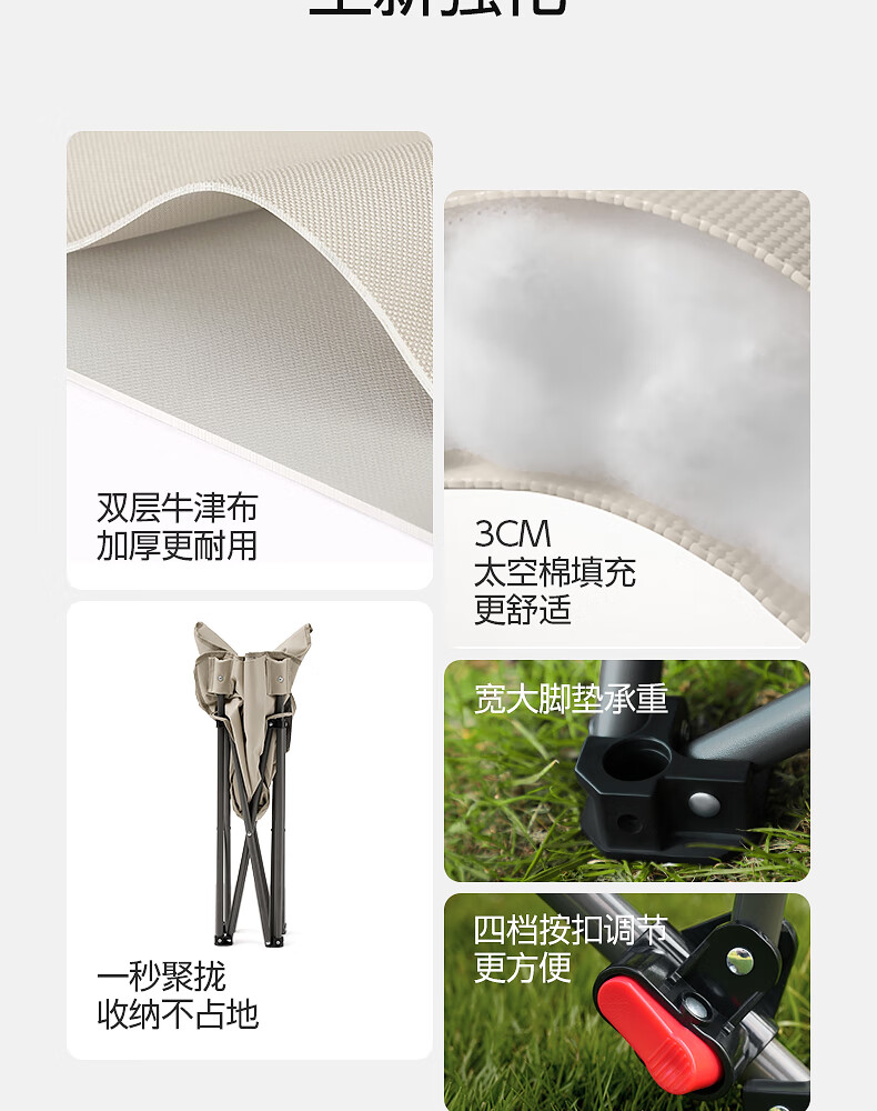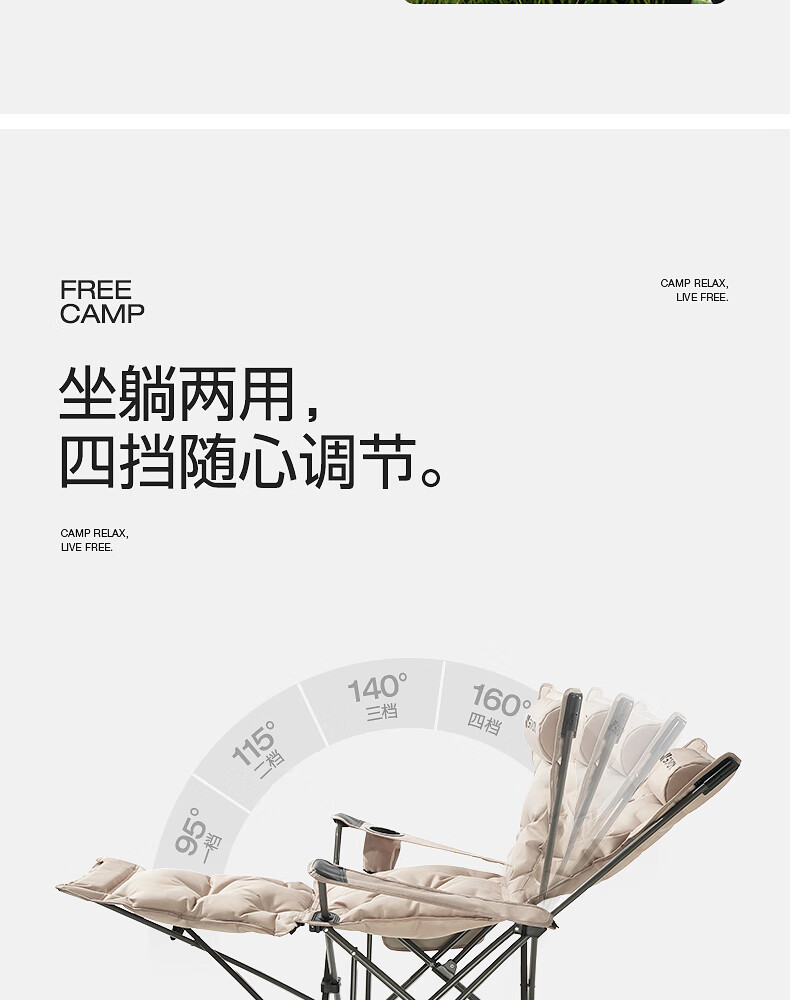 法·玛莎 FAV MARTHA德国品质户外月亮椅带脚托加棉露营椅折叠椅子折叠躺椅午休钓鱼椅 加高靠背-坐躺两用【三档调节加腿托】浅卡其-不加棉