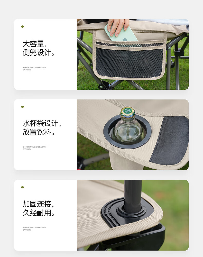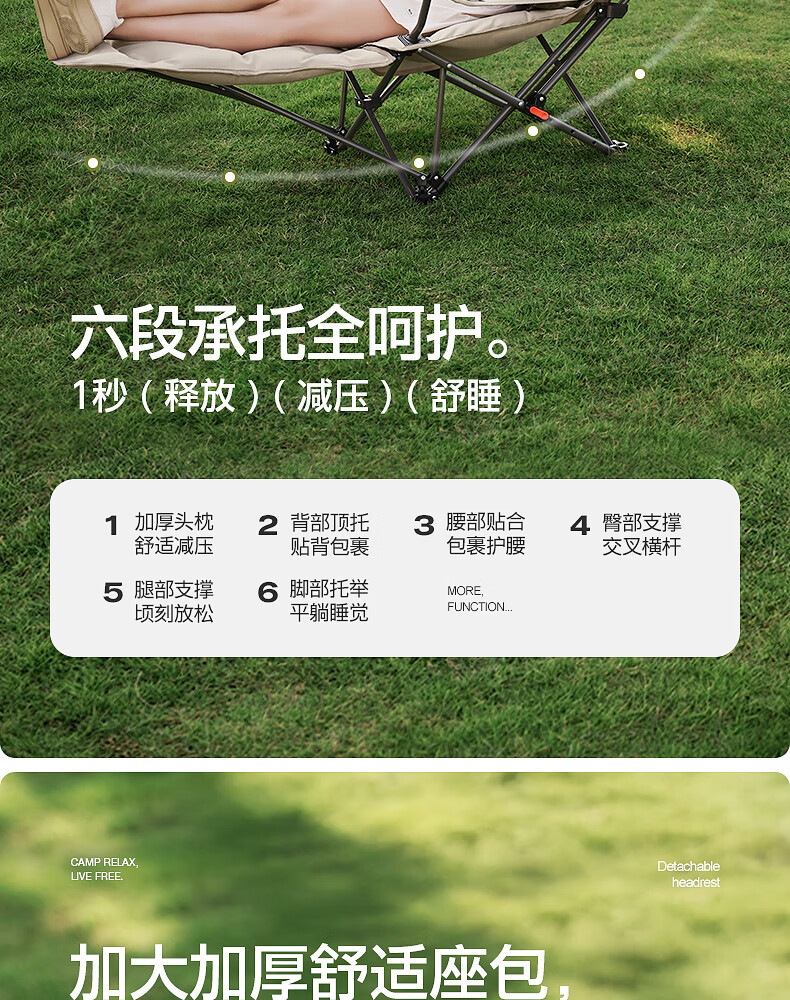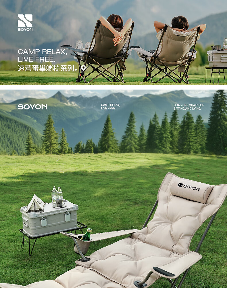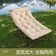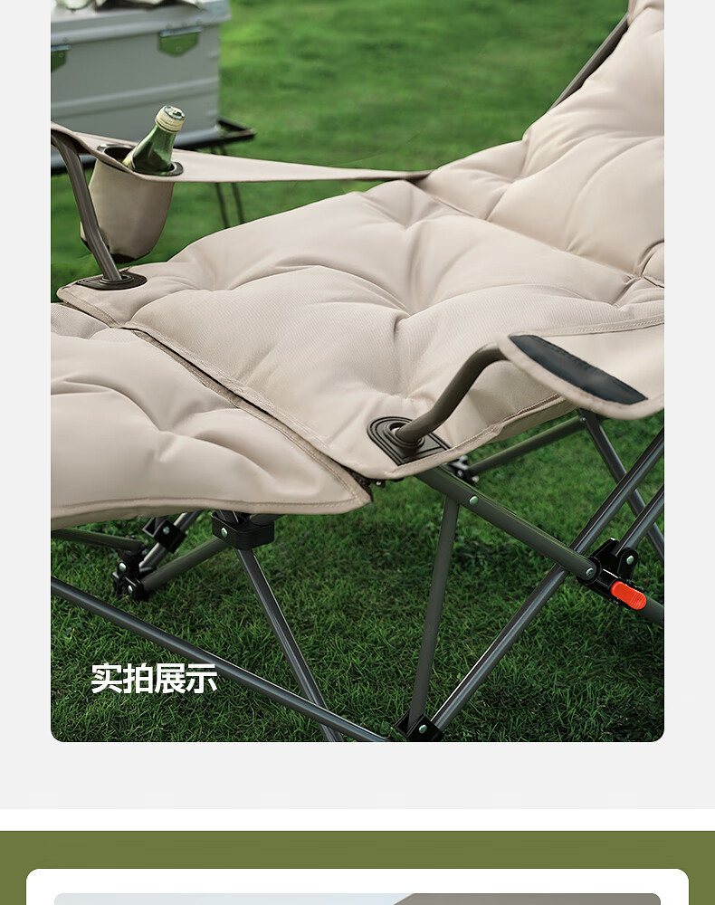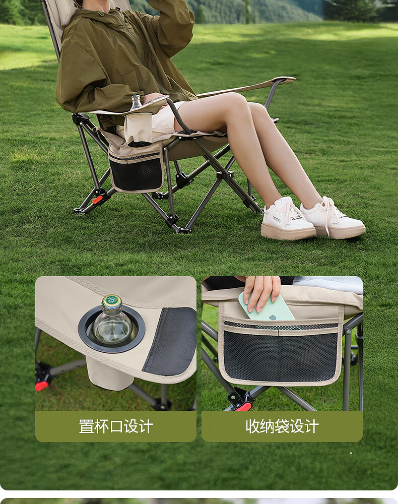 速营躺椅折叠午休户外折叠椅2025新款坐睡两用办公室午休露营椅子 卡其款【自带扶手头枕一体】+软水壶