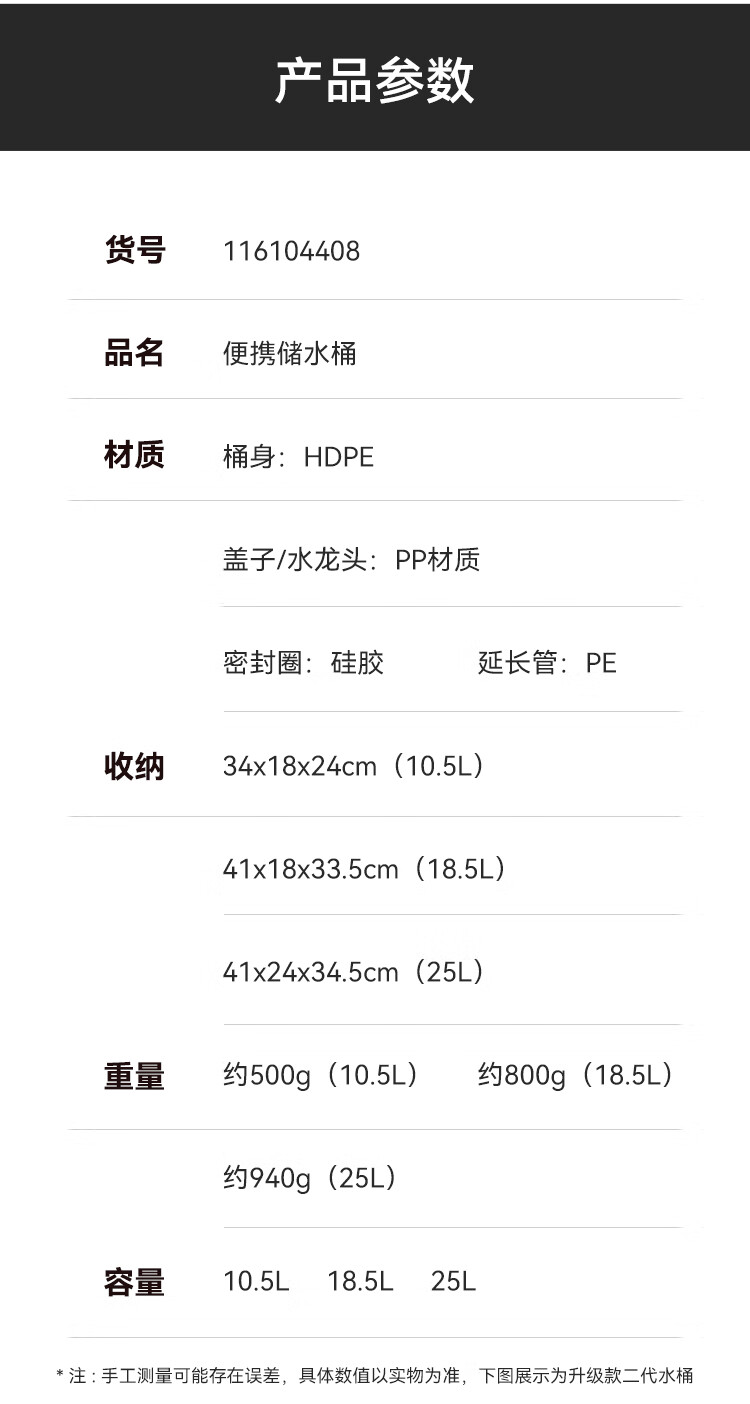 价格合适,质量很好,使用方便,上面的提把方便力气小的人拿起来。本人买小号的,家庭用,停水的时候,两个人洗漱完全够用,如果家里面人多,建议买大号的。