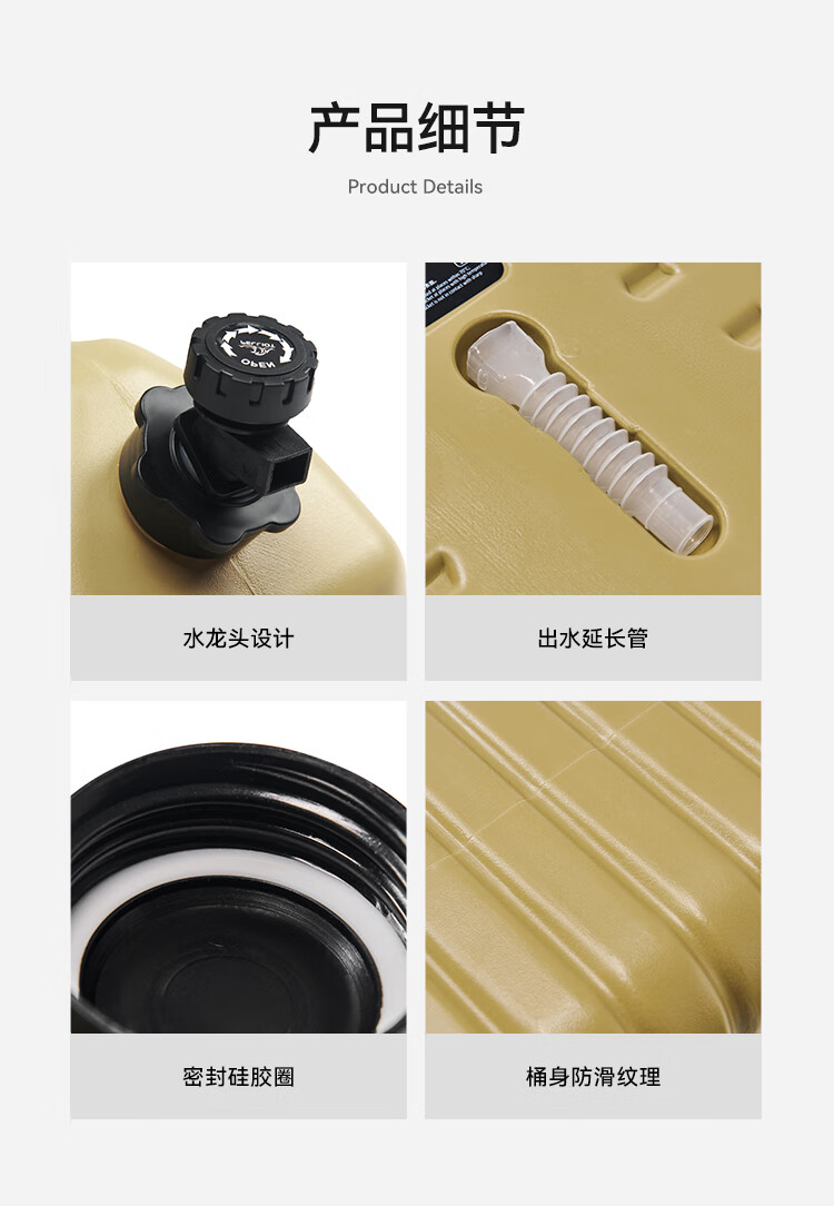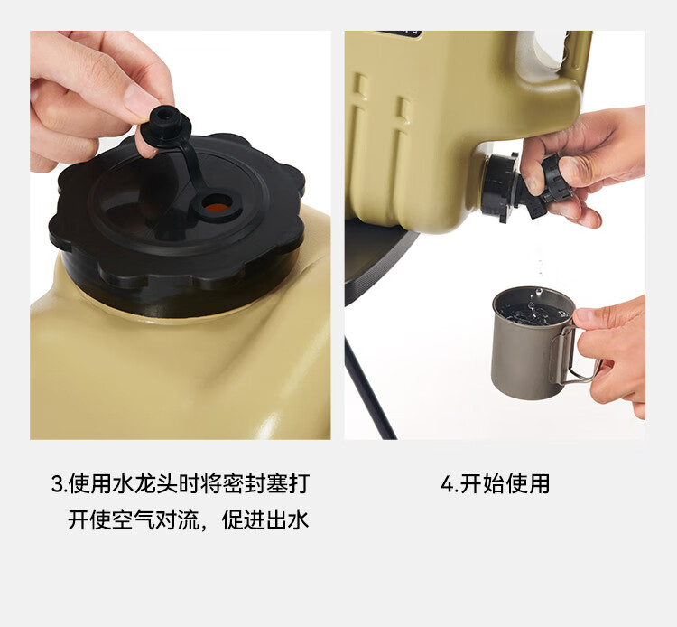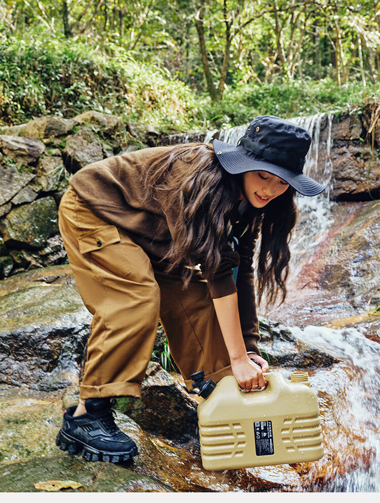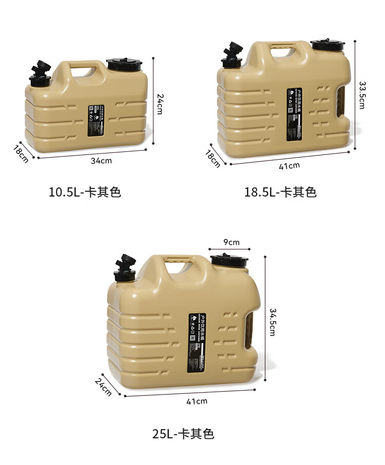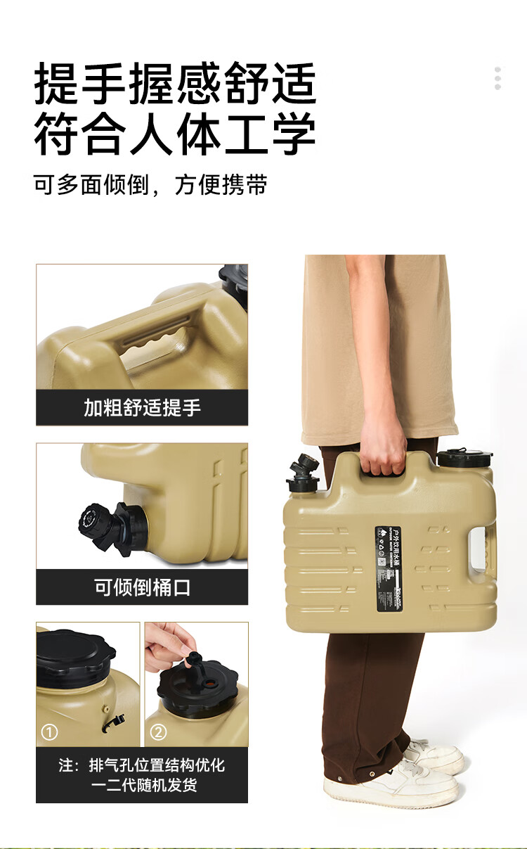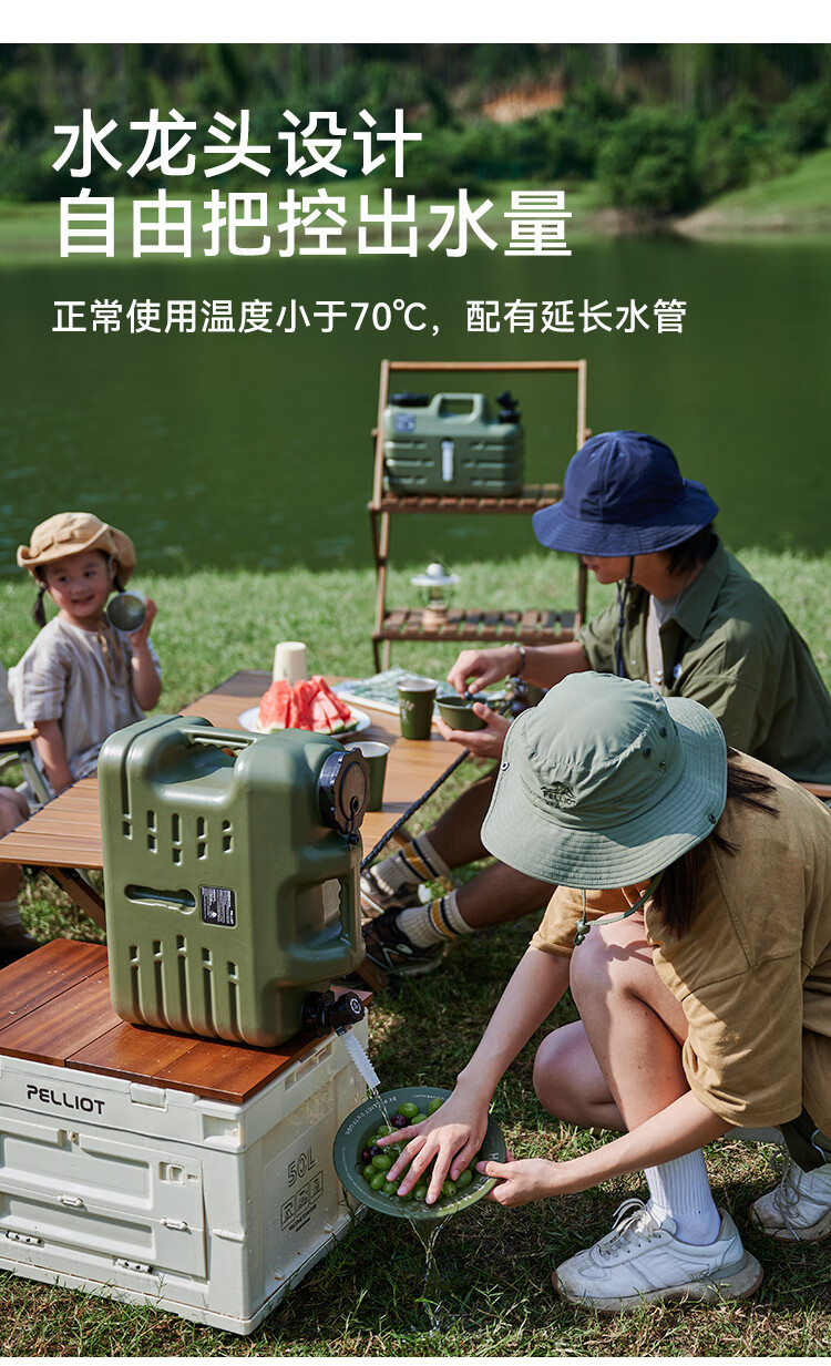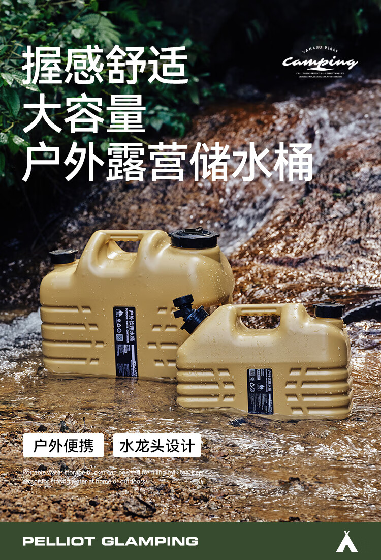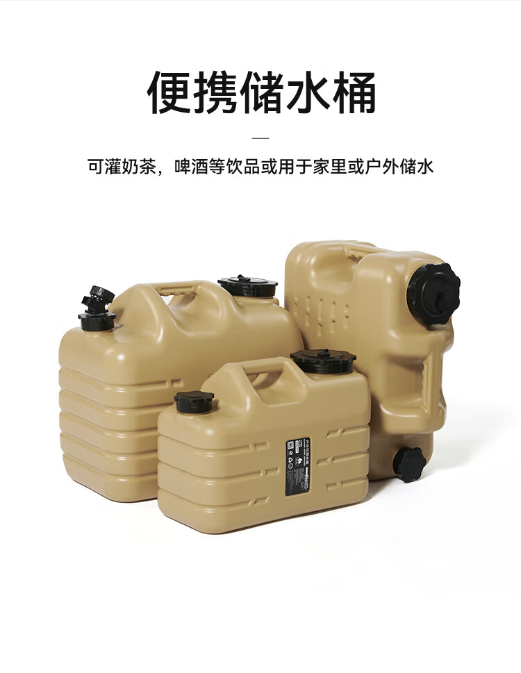 伯希和(Pelliot)户外便捷手提水桶加粗舒适提手水龙头设计倾倒桶口储水箱 卡其色-10.5L