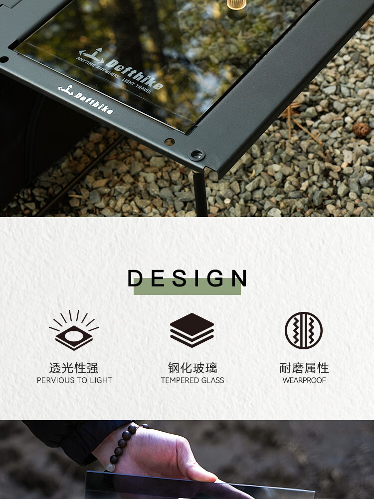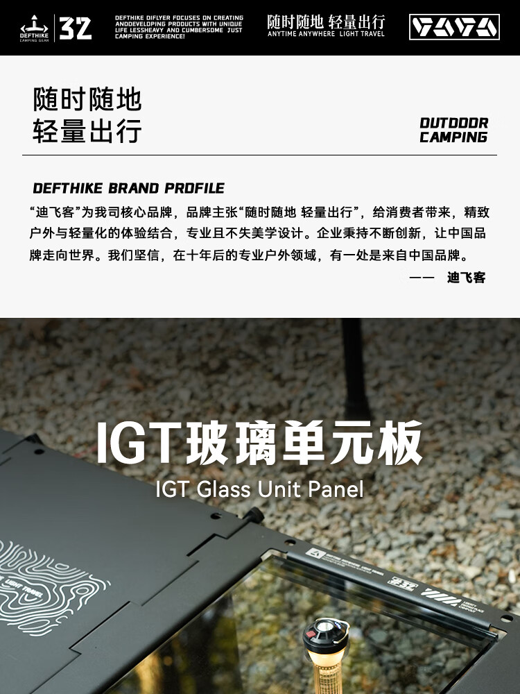 迪飞客/Defthike户外露营IGT桌面配件喝茶桌耐磨钢化玻璃面板单元玻璃板 一单元带灯孔