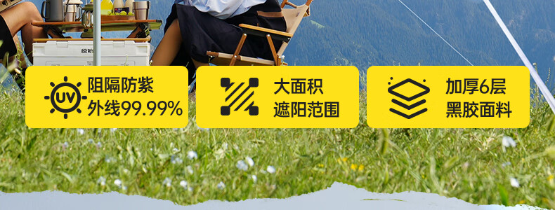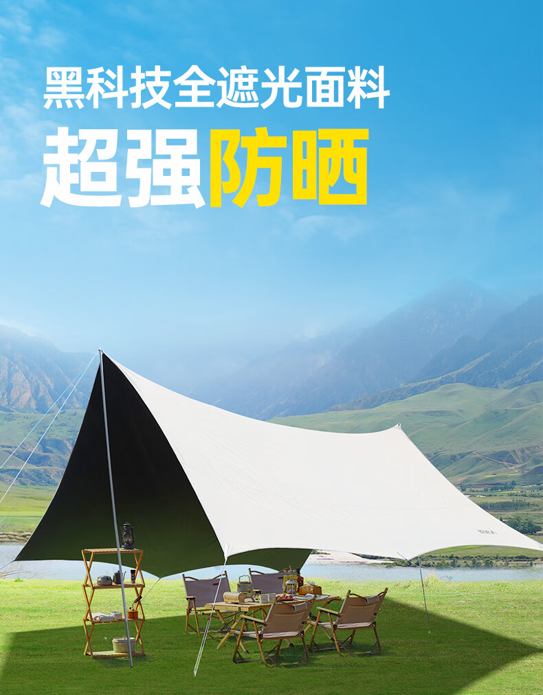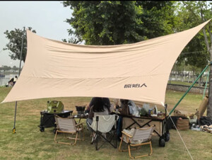 之前看到过别人的椅子,质量不错,就记住了这个牌子,想节假日带小朋友外出露营,天幕真的必不可少,防晒,挑选了很多的品牌,也包括他家的其他款式,最终选择了这款,底层是黑胶还真的会比其他材料凉快些,而且天幕还是买大一点会比较好,人多人少也能通用,这款的话一家几口人就绝对没问题。