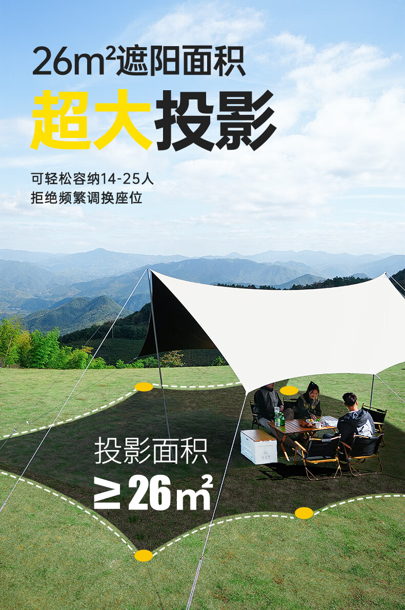 原始人黑胶天幕帐篷户外防风防晒涂银野餐露营装备六角蝶形遮阳棚 (20㎡)套餐一(家庭出游)