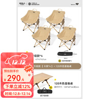 原始人露营桌椅户外折叠椅子桌子一体便携月亮椅野餐野营桌椅套装 120原木色蛋卷桌+卡其*4