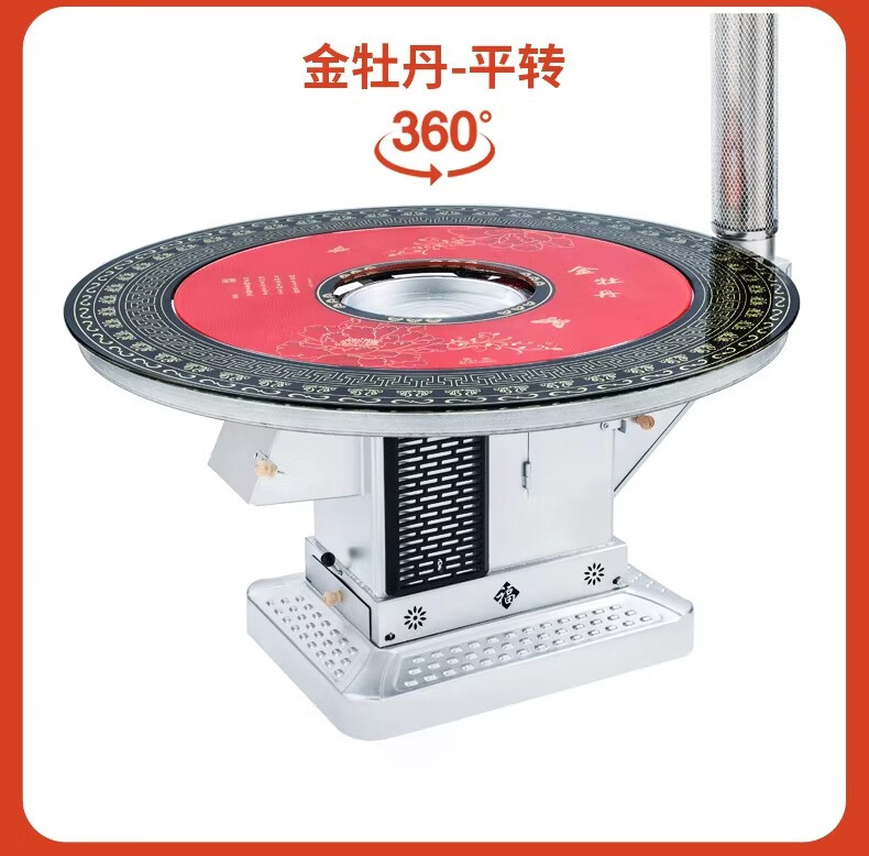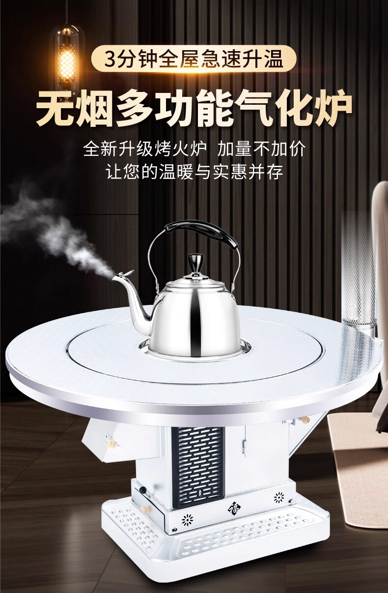 【送货上门】昊燃·取暖炉农村冬季新款气化炉室内烤火 加厚柴煤两用多功能转盘节能无烟采暖炉回风炉 1米加厚防爆玻璃单桌面 (柴煤两用)