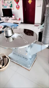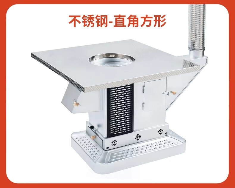 璞灶旺冬季柴火灶加厚加高农村取暖炉烧柴家用节能柴煤两用多功能回风炉 1米圆桌不锈钢(柴火炉)