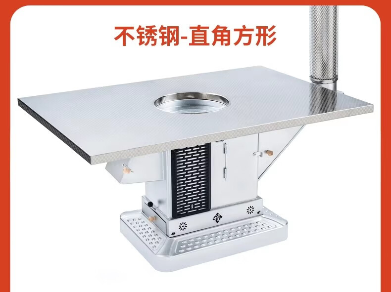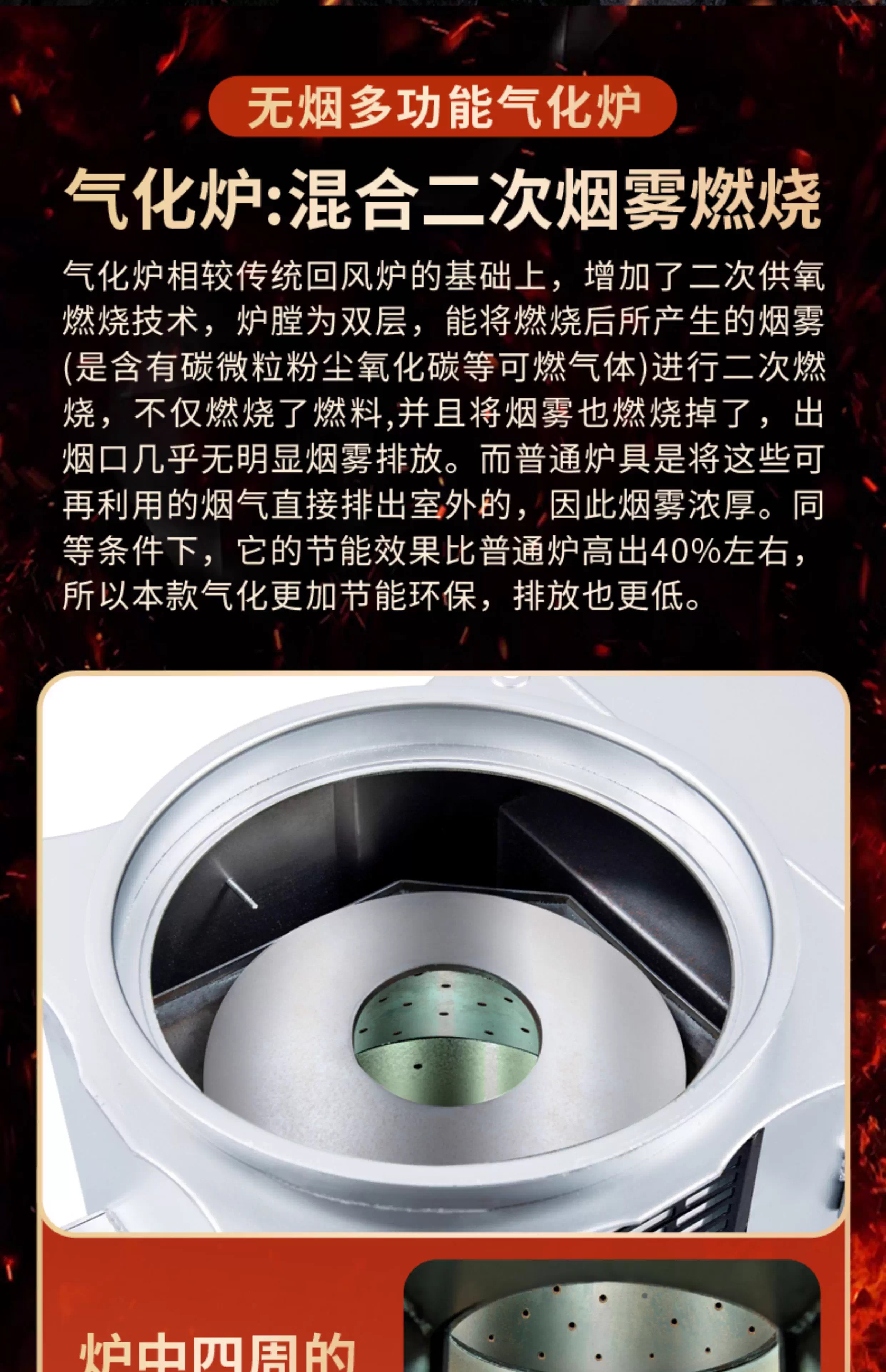能师傅【送货上门】气化炉家用室内烤火炉柴煤两用节能无烟柴火炉灶农村 1米加厚不锈钢桌面【4-5人 回风炉 】