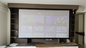高清投影幕布整体效果不错,可以推荐一下,如上买的是隐藏款,对美观要求更高的可以买嵌入款,记得提前规划开槽尺寸