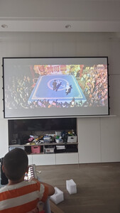 幕布已经安装好了,颜色柔和也很平整,安装师傅很有耐心解决了各种问题。等待入住后可以看电视了看看后续效果。