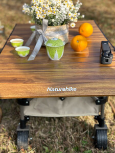 挪客Naturehike露营车四向聚拢收纳户外露营野营折叠推车摆摊车快递车 卡其色/Mini 140L +桌板