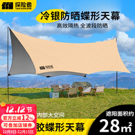 探险者天幕户外露营超大防晒防风防水银胶遮阳棚穹顶沙滩天幕野餐 28㎡奶咖黄银胶天幕(10-16人)