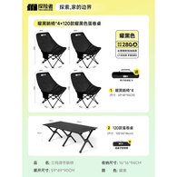 探险者(TAN XIAN ZHE)户外折叠椅子可躺可睡月亮椅躺椅露营折叠桌椅全套装备便携沙滩椅 曜黑躺椅*4+120款曜黑色蛋卷桌
