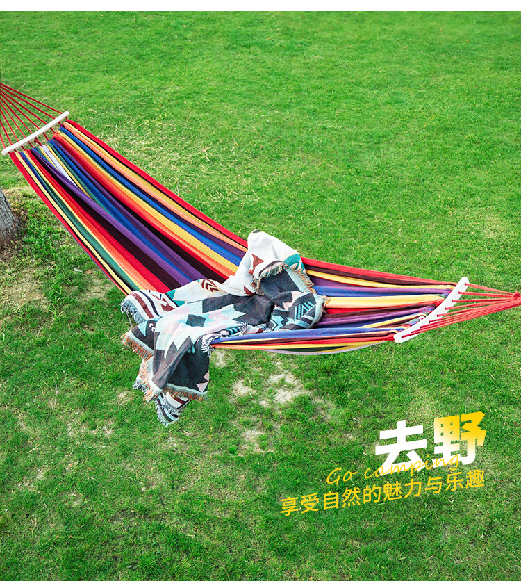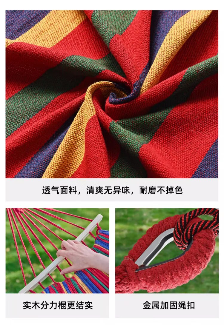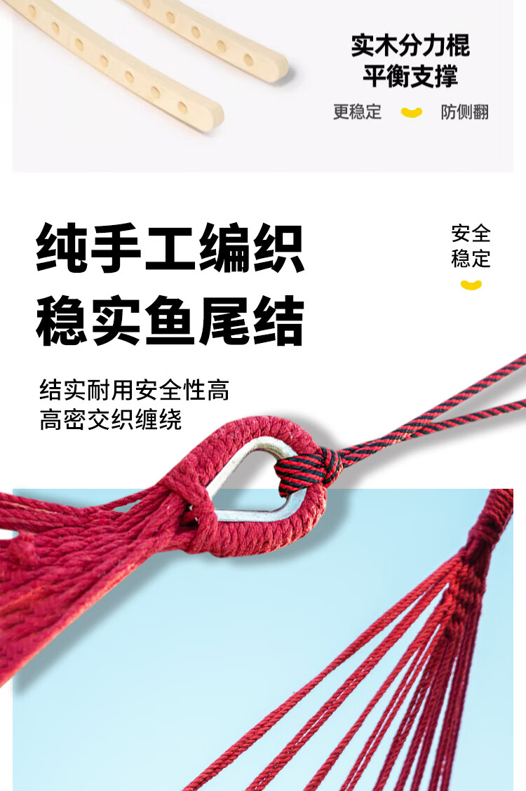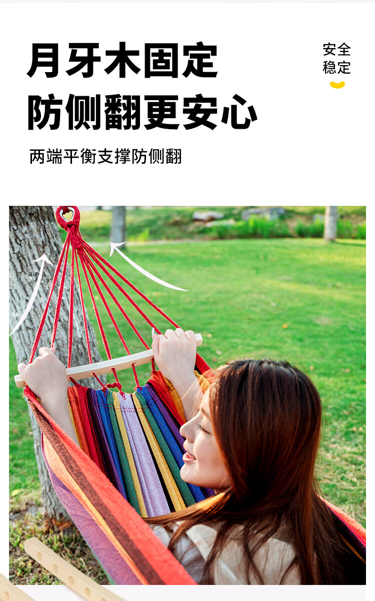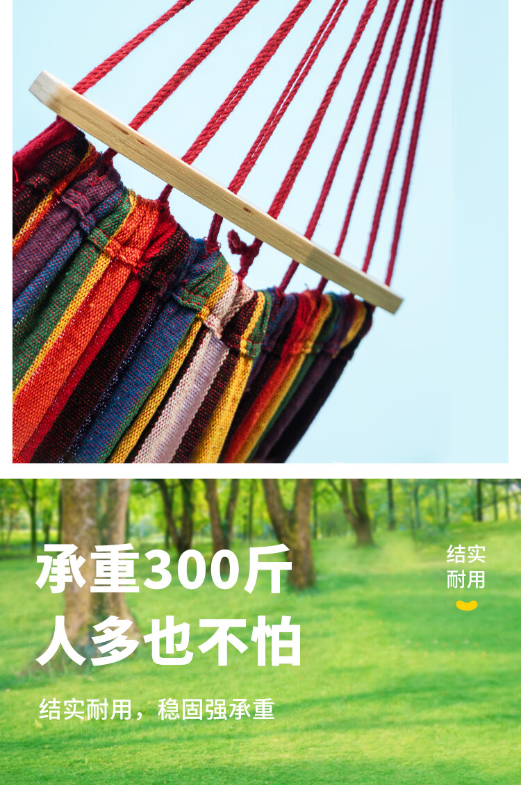 盛源 吊床户外双人 单人吊床防侧翻 帆布吊床学生宿舍室内秋千 弯木防侧翻款红色(0.8米宽)