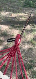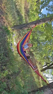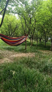 刚收到就迫不及待打开了,儿子超级喜欢,荡秋千的感觉,,吊床很好,躺着很舒服,携带很方便,承重力很大,来到外面拴在树上,很吸引小朋友啊,这个夏天有玩的了