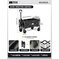 探险者户外露营装备全套七件套带桌板露营车桌椅套装可折叠收纳小推车 极光黑【静音万向轮+加厚车架】