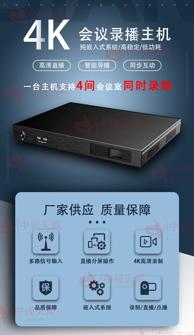 中视天威4K高清会议录播主机嵌入式录播直播设备智能导播视频会议录播机 内置课堂语音转写系统
